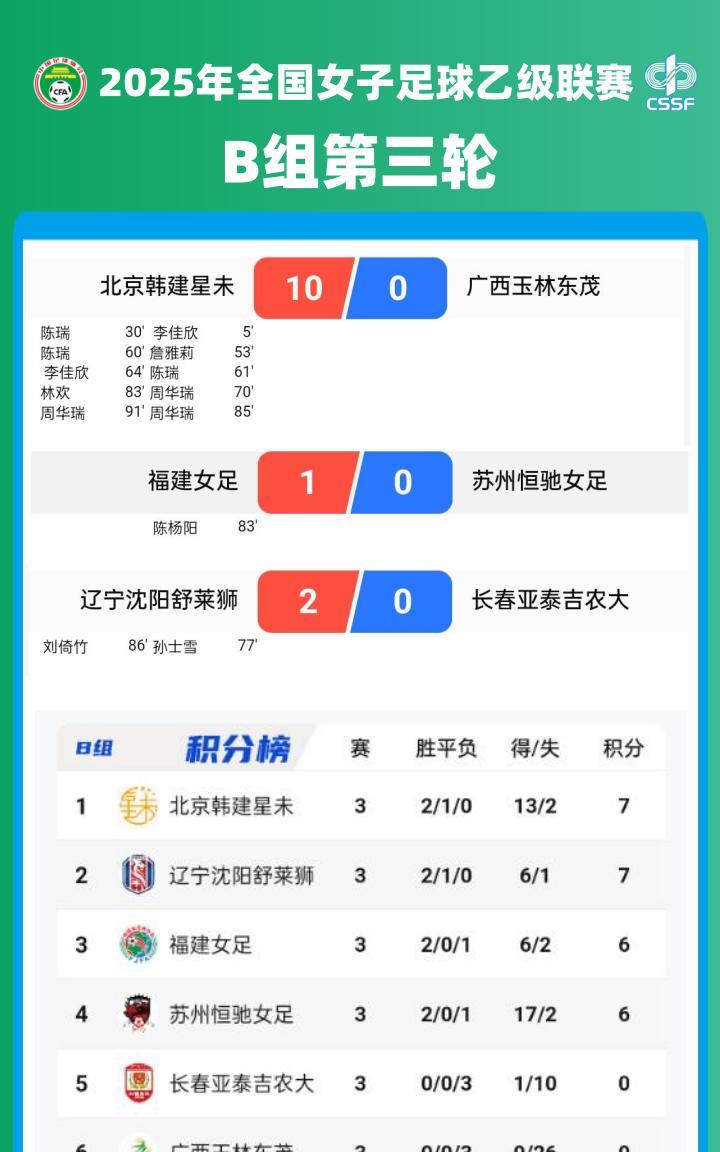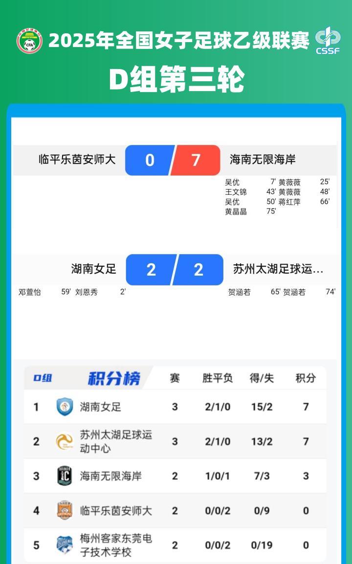 2025#女乙联赛小组赛A、B、D、E组第三轮战报及积分榜
