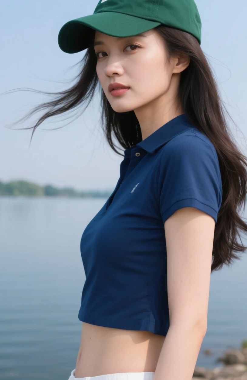 湖光映人影,她是夏日清晨最干净的一抹风景