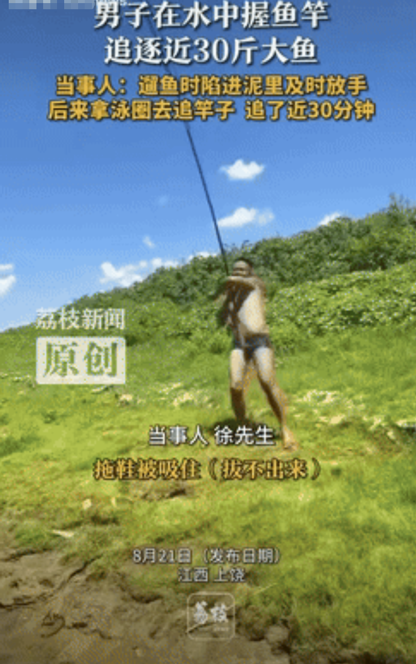 “这就是命啊!”江西上饶,一男子垂钓时,成功钓到一条近30斤重的大鱼,“遛鱼”过程中,脚部不慎陷入淤泥没法拔出,鱼竿也立不起来,男子担心鱼跑,就把竿子放了,不料,男子为了大鱼,竟拿着泳圈在河里追了近半个小时,网友:大哥是个狠人! 据荔枝新闻8月21日报道,男子拿着工具走到河边,找了个合适的位置,把鱼饵放在鱼竿上,然后甩到河里,静等鱼上钩,突然他感觉竿子往下一沉,男子凭借经验知道是条大鱼。 但鱼在河里拼命挣扎,男子只能往水里走去,结果没走几步,脚上的拖鞋就陷在泥里,无论男子使多大力,脚都被困不能动弹,手里的竿子逐渐脱离他的掌控。 为把鱼钓上来,男子果断丢弃竿子,等他能自由活动时,再去寻找竿子,眼看竿子离岸边越来越远,男子想都没想到用泳圈套出自己,冲到水里,一番努力后,竿子重新回到男子手里。 从岸边来看,只能看到男子的头部和竿子,真是豁出命追鱼了,好在男子一点点扯着竿子往回走,主动权回到他手里,最终把鱼抱在怀里,男子脸上露出了兴奋的笑容。 不仅竿子没丢,鱼也逮着了,或许这就是鱼的命,不过男子的行为可不能轻易模仿,不是所有人都能这么幸运,没十足把握时,就等下一条大鱼上钩。 对于这件事情,大家有什么看法?