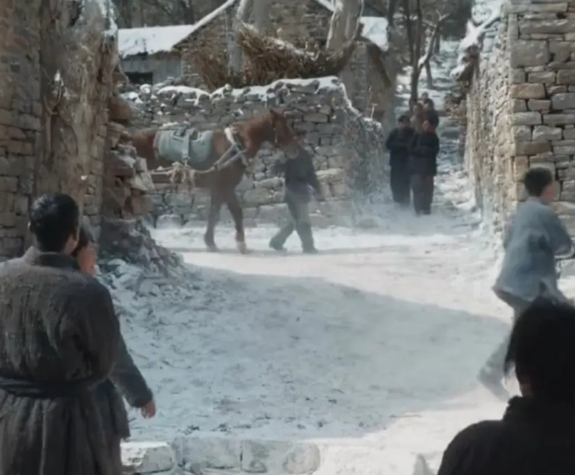 《生万物》里,村里的雪是假的。 能够确定的是,宁绣绣被绑架上山的那场戏,是在吉林长白山拍摄的,那肯定是真雪。 然而,村里的戏是在山东临沂的红色影视城拍摄的,剧中的雪,全是类似石灰粉的东西。 在很多镜头里都能察觉到,人跑起来或者很多人走路的时候,就会有粉尘扬起。 并且剧中的雪,不管是在房顶上、院子里,还是道路上,好多天都不融化,也没人打扫藍藍