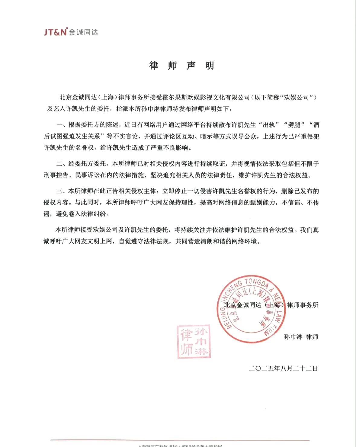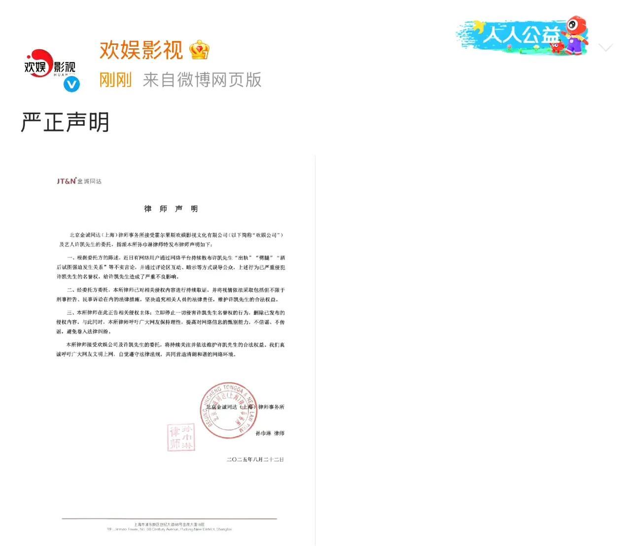 #许凯 恋情时间线# 许凯针对相关不实言论迅速采取行动,果断发布律师函予以回应。粉丝们在评论区力挺偶像,纷纷表达支持,坚定地站在许凯身边。与此同时,欢娱公司也积极发声,同样发布律师函,展现出维护旗下艺人合法权益的坚定决心 ,全力捍卫艺人的名誉和形象。