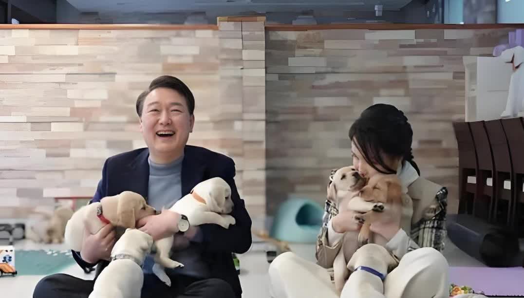 64岁尹锡悦如今落难了,也没有子女来帮助他,他和妻子金建希都喜欢狗子,被拘前并没