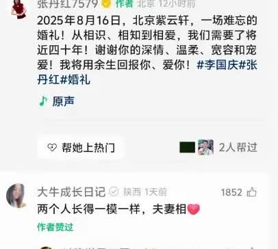 李国庆赚大了! 8月21号,刚办完婚礼没几天,张丹红就扔出婚礼照,配文里“用余生回报你、爱你”几个字,说得又狠又烫,那股子劲儿,哪像是过了半百的人? 这可是俩人婚后第一次公开秀恩爱,藏了快四十年的火,一烧起来就没打算灭。 原以为是岁月静好的晚年恋,没想到是奔着“余生都要腻死你”去的! 我现在有点担心,李国庆这身子骨,扛不扛得住张丹红这波“余生回报”啊?毕竟这俩人,一个敢在公开场合喊出“爱你到最后”,一个被逗得像个初恋小伙儿,哪有半点“长辈”的拘谨? 说到底,爱情哪分年纪?小年轻的甜是汽水冒泡,他们的甜是陈酒开封,猛劲儿藏在醇厚里,一撒出来就够劲儿。 张丹红这波操作,算是把“老来俏”的爱情玩明白了——年纪大了又怎样?谁规定一把年纪了就得端着?他们撒起糖来,比小年轻还猛,还敢!