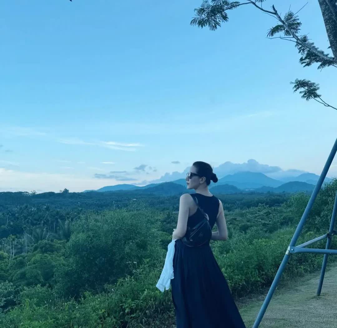 高圆圆发文:夏日库存,秋天见光。 高圆圆身着长裙立山巅,邂逅自然诗意浪漫 。