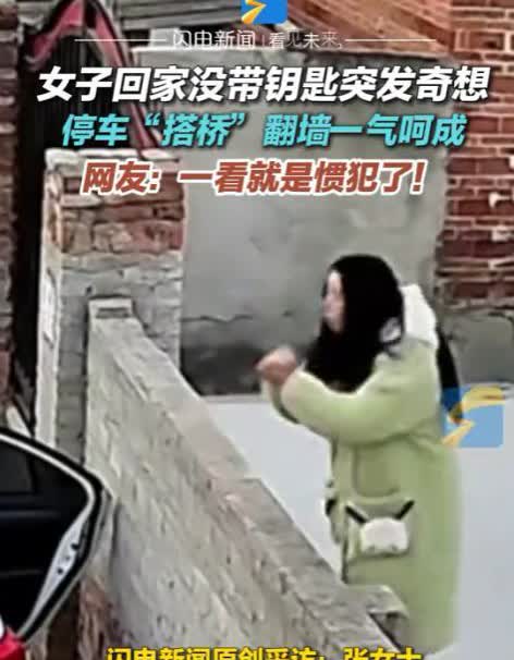 河南南阳,女子早上开车送孩子去上学,临走时就把家里的大门给锁上了,没想到等女子回到后才发现家门钥匙没带,她赶紧给家里睡熟的姐妹打电话,但因为睡的实在太香怎么都没打通,女子心想大早上扯着嗓子喊也不太好。 早上,在河南南阳的一户人家,有位女士急急忙忙送孩子去上学。她出门时顺手把门一锁,结果把钥匙忘家里了。等回到家门口才恍然大悟,赶紧给屋里的姐妹打电话,可姐妹睡得跟小猪一样沉,电话响个不停就是没人接。 她瞅瞅周围,邻居们都还没起床呢,她也不想大声嚷嚷。想了想,她有了个主意:先把车慢慢倒到院子墙边,然后站到车后头,踩着墙就往上爬,一使劲儿,嘿,还真就翻进院子里了。这动作快得跟练过似的。进了院子,她开门进屋拿了钥匙,然后又把车好好停进院子里。这一套动作下来,流畅得很,连她自己都没想到,头一回翻墙就这么成功了。事后,她笑着说自己这辈子头一回爬墙,可看她那动作,一点也不像个新手。这次大清早的“探险”,成了她和闺蜜们之间一个好玩的笑话。