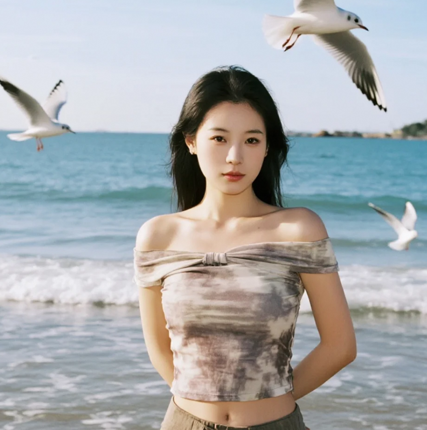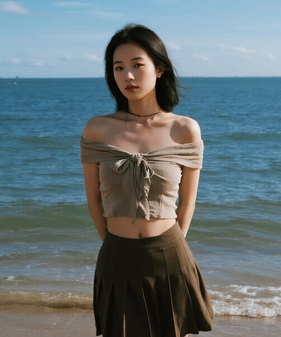 紫色小裙摆,金色沙滩,这个背影杀我!
