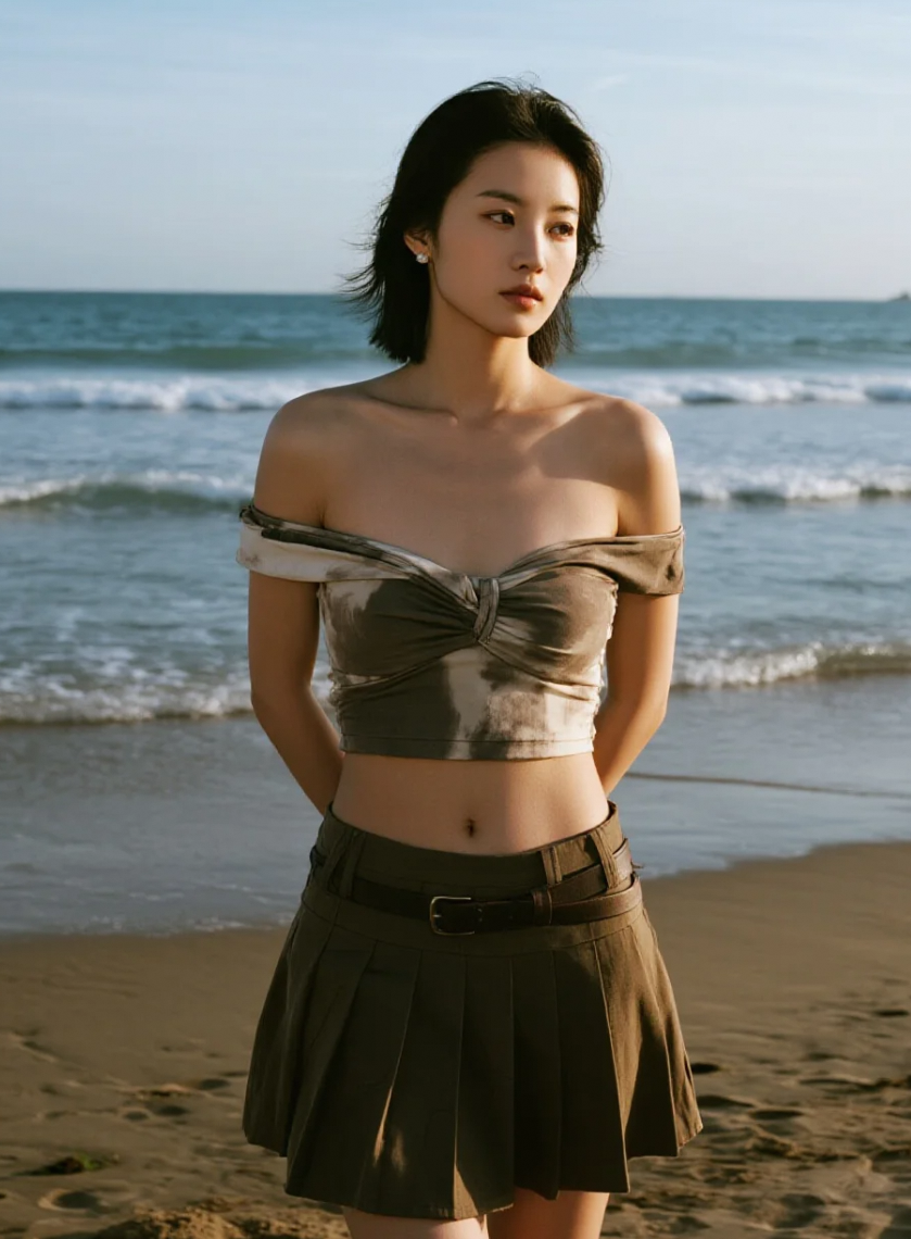 紫色小裙摆,金色沙滩,这个背影杀我!