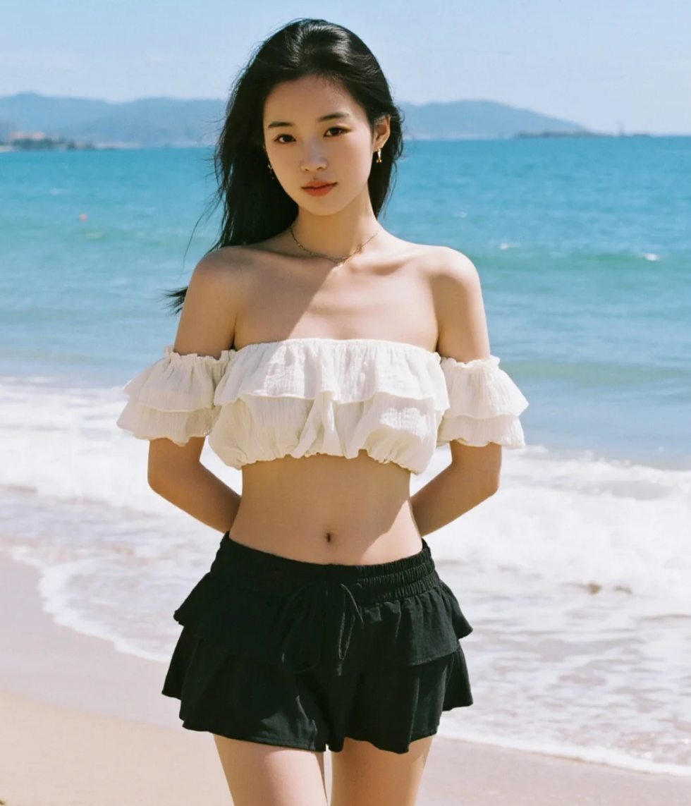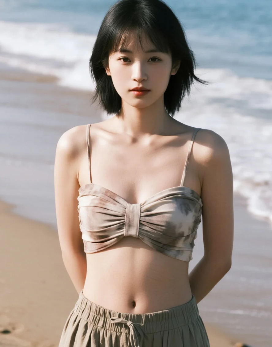海风撩起长发,她就这样站在沙滩上,美得让人心动!