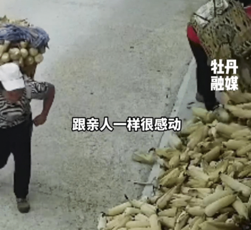 监控视频中,男子的两个邻居一人背着一个背篓,背篓里装着满满的玉米,少说一背篓也得二三十斤,看她俩干的多带劲就像是给自己家干的一样不辞劳苦。