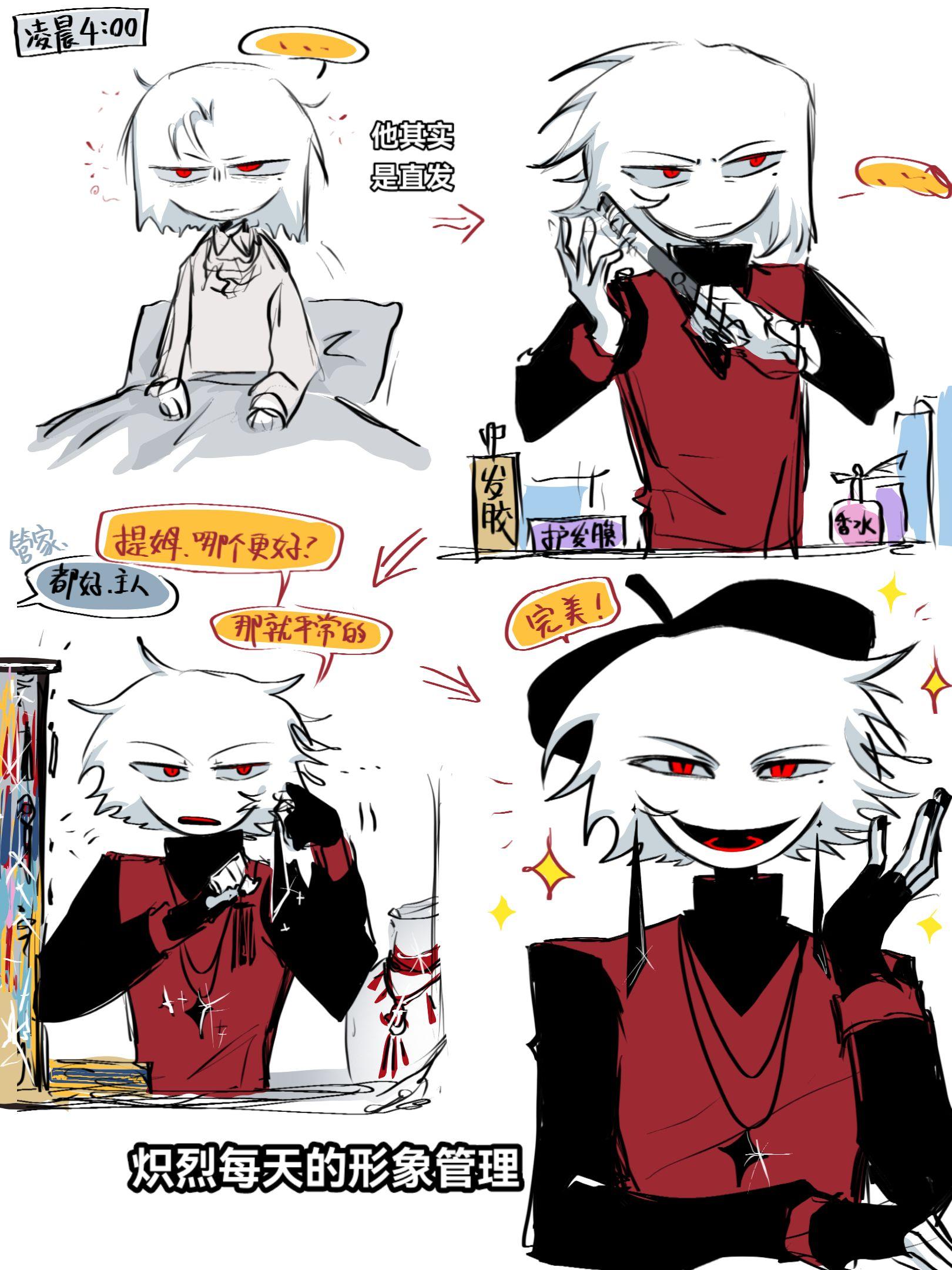 就是在直播间顺手画出了很满意的炽烈的脸,后面还有炽烈日常的形象管理和摸鱼