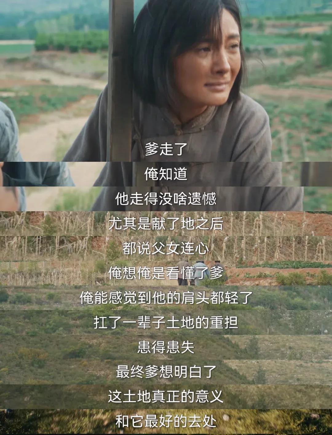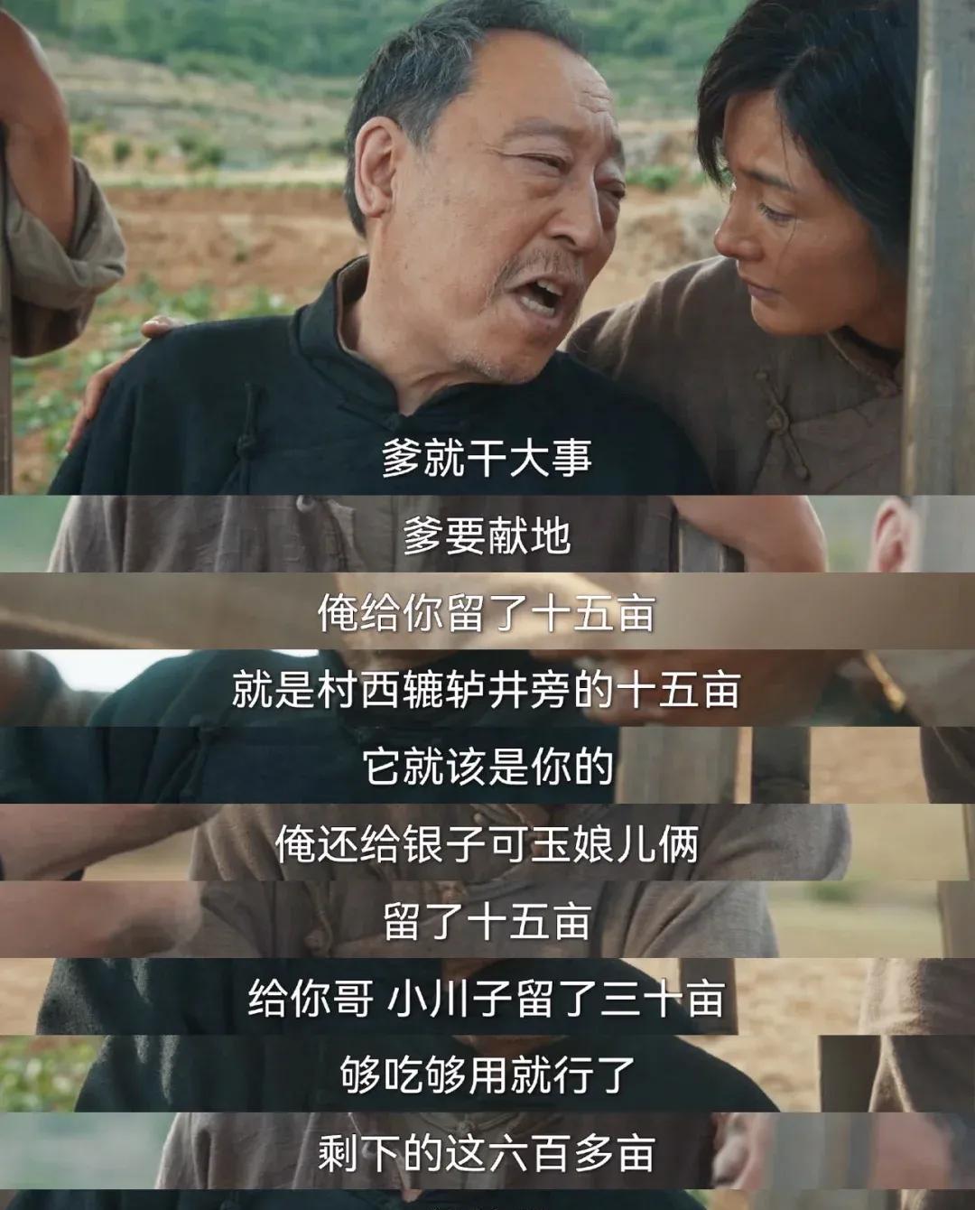 《生万物》宁学祥临死给绣绣留了十五亩地[灵光一闪] 宁学祥知道自己要死了,让家人推他回到地里,最后他跟绣绣说软话了,对不起绣绣 临终给绣绣留了十五亩地,还是之前那十五亩,给银子母子留了十五亩,给可金留了三十亩,没说给苏苏,他知道苏苏没了吧!虽然绣绣一张瞒着他 然后剩下的六百多亩全部捐出去了,分给了村里人 宁学祥都可以洗白,银子结局也能和铁头在一起,为什么苏苏不可以得到幸福[大哭]