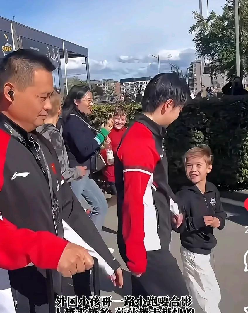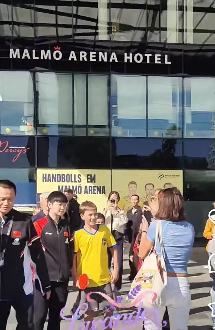 外国小朋友们也很喜欢莎莎。 昨天的女单半决赛结束后,莎莎一走出比赛场馆,就看到很多瑞典小朋友跑着要和莎莎合影,大一点的小朋友会拿手机拍照,莎莎也会放慢一点脚步,跟小朋友合影。后面看到一个可爱的小孩儿,他没有手机,但是他和莎莎说话了,看俩人聊的挺开心,小朋友还给莎莎加油了。这就是莎莎的影响力,在国际赛场上,有很多的外国球迷也在现场支持莎莎,她也是小朋友的榜样。 每次比赛结束,袁队医都陪在莎莎的身边,后来看到人越来越多,他们也加快步伐走了,今天是瑞典大满贯赛的最后一个比赛日,现场的观众应该也会更多吧。这次在瑞典,莎莎是真的很快乐,希望她一直做快乐的女孩子。 莎莎和曼昱时隔18个月后再次拿到女双冠军,俩孩子扛着奖杯就走了,因为这奖杯太重。俩人很久没有在决赛碰面了,这是打了女双,然后再单打决赛,又要打的披头散发了,两个人都加油哦,不管谁赢,都替你们开心。