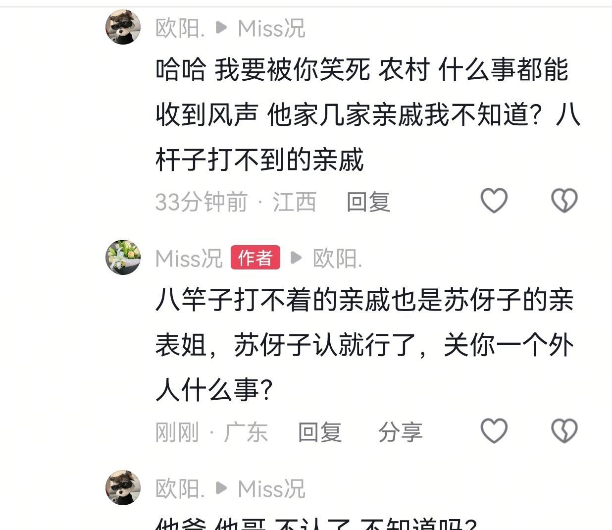 表姐是八竿子打不着的亲戚,那3月23日苏伢子回宜春慈化反背认亲现场,哥哥怕妈妈太激动会晕叫表姐在旁边扶一下妈妈!后面陪着苏伢子去南昌,去北京看眼睛……,现在村里人竟然说舅舅和哥哥说不认这个表姐了,我想问一下哥哥,这是真的吗?#颠覆三观 @表姐(苏牙子) @苏牙子 @苏牙子哥哥