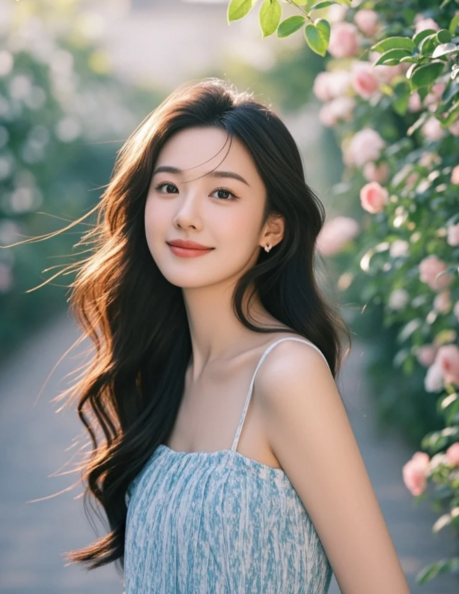 阳光下,她长发如瀑,笑容清新,宛如画中走出的仙子