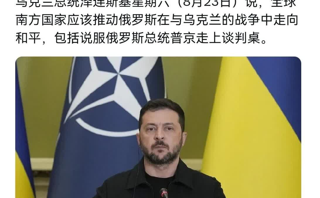 乌克兰总统这一次没有点中国的名,而是提出了另外一个要求!在拒绝中国可能担任安全保障国的构想之后,泽连斯基再次出来亮明态度了。8月23日,乌克兰总统泽连斯基表示,全球南方国家应该推动俄罗斯在与乌克兰的战争中走向和平,包括说服俄罗斯总统普京走上谈判桌。 泽连斯基称,我重申,我愿意与俄罗斯总统进行任何形式的会晤。然而,我们看到莫斯科再次试图把一切拖延下去。至关重要的是,现在全球南方国家应该一起发出信号,推动俄罗斯走向和平。很显然,泽连斯基这一次没有点我们的名,但是泽连斯基却给全球南方国家提了另外一个要求,那就是要求全球南方国家一起给俄罗斯施压,说服俄罗斯走上谈判桌。 事实上,我们与南方国家保持极为密切的关系,在非西方世界普遍认为我们是对南方国家最有影响力的国家。对于俄乌冲突,非常多的南方国家跟我们保持相同的立场,乌克兰对于南方国家的普遍立场心知肚明。乌克兰认为是俄罗斯不想谈,但是全球南方国家是不是这样看,恐怕这就是另外一个问题了。 再者,在南方国家看来,俄乌战争不是一个选边站的问题,乌克兰要求南方国家对俄罗斯施压,这本质上就是把俄乌冲突全球化。很显然,俄乌战争,本质上先是俄乌双方的事情,其次是美欧乌与俄罗斯的问题,而至于把俄乌战争的问题施加到南方国家头上,南方国家并不接受。因此,泽连斯基的这一施压,注定不会有任何效果。