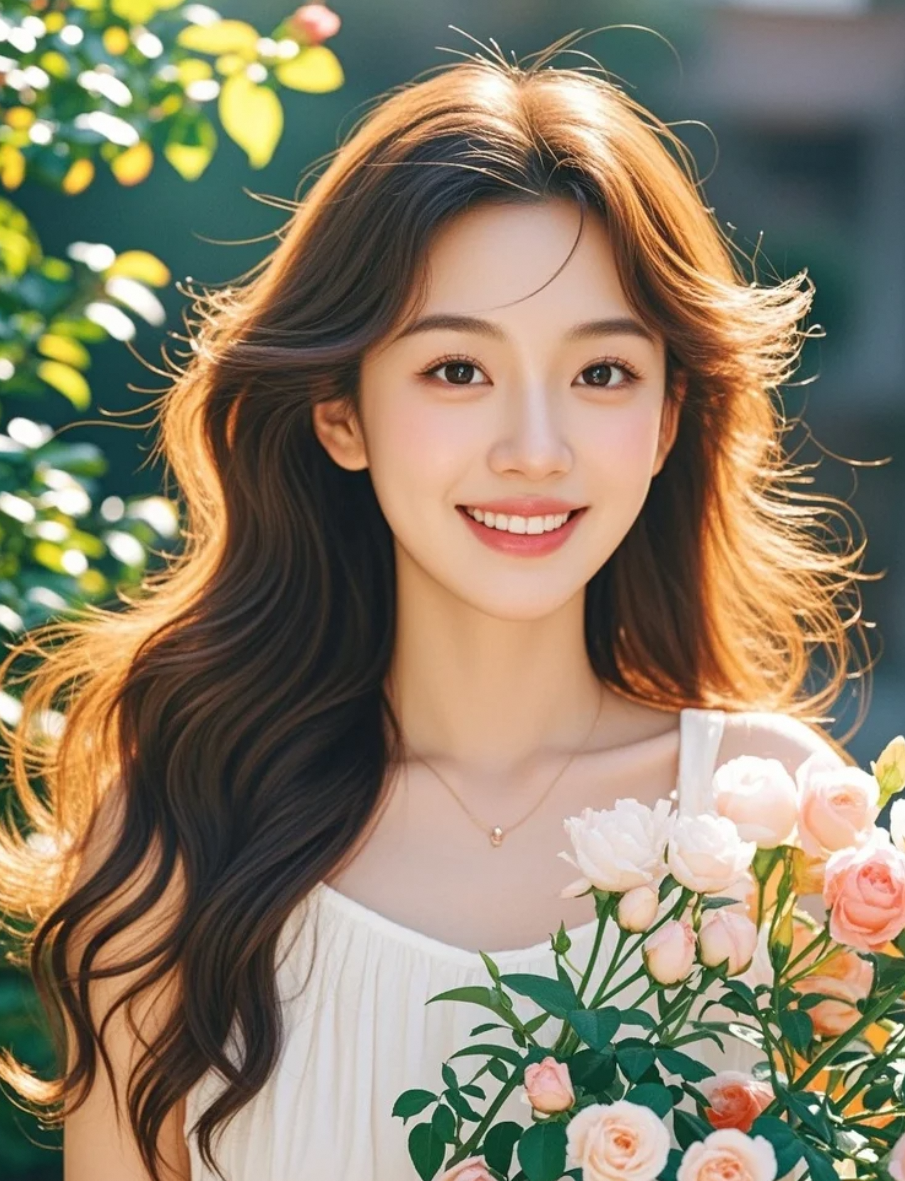 长发如云,笑容似水,东方女孩的宁静美动人心弦