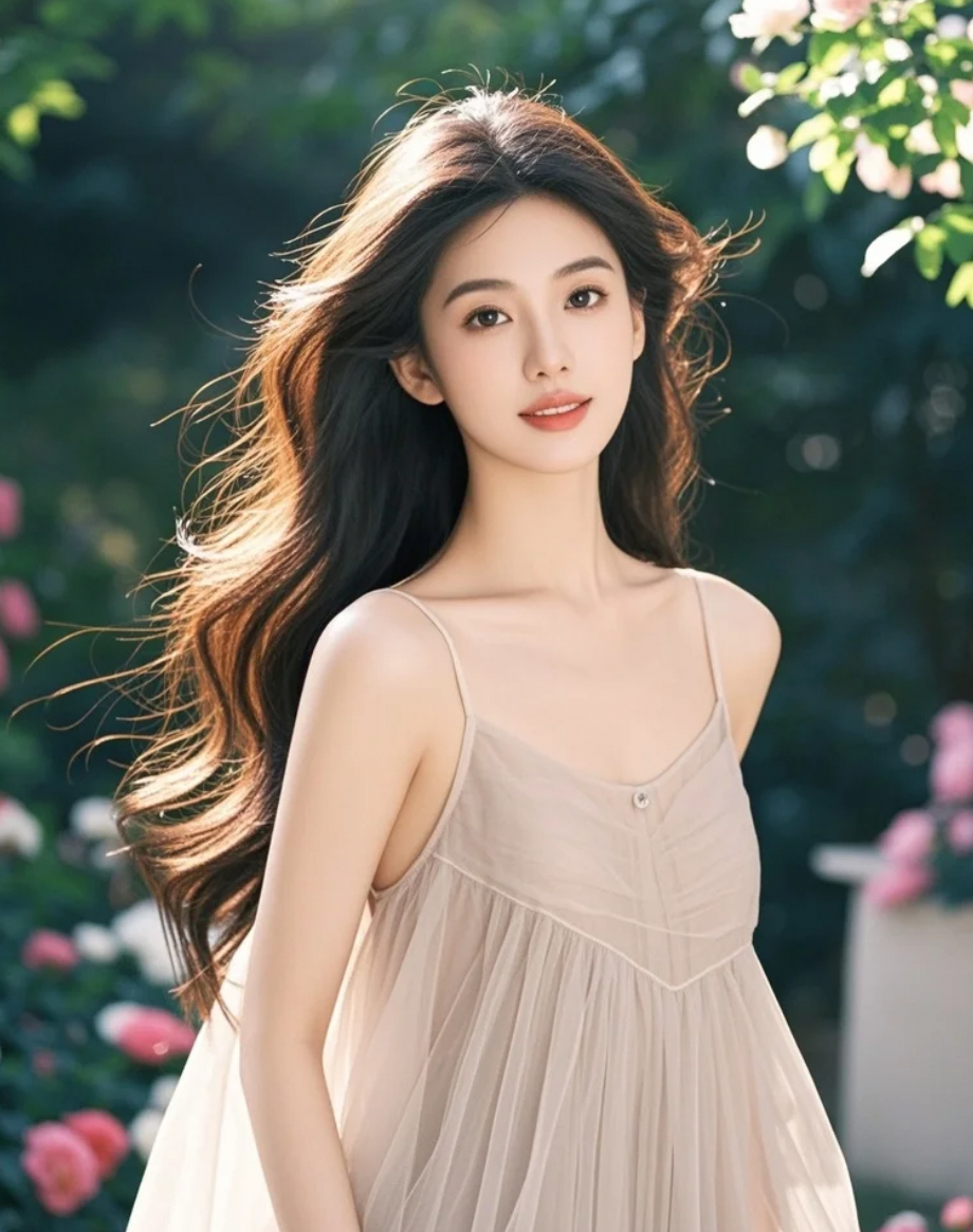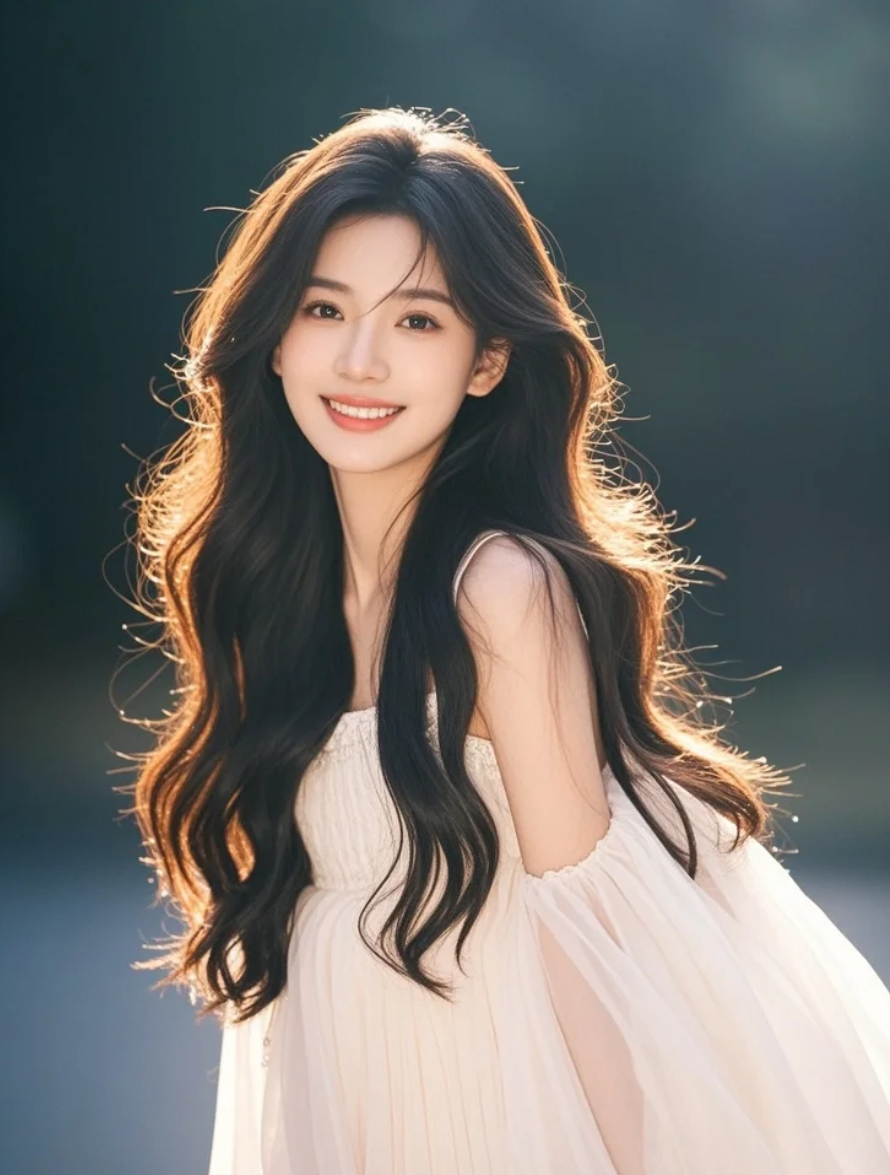 青春洋溢的东方少女,长发飞扬,笑容比阳光更明媚