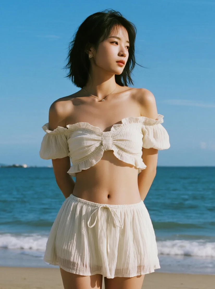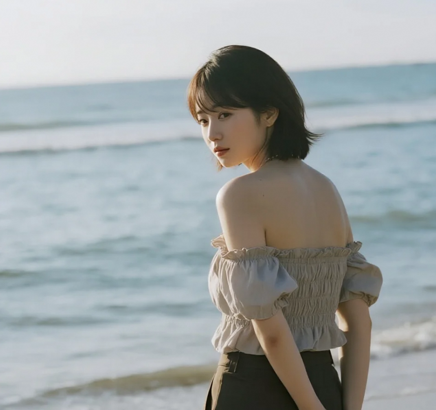 海风撩起发丝,她站在沙滩上美得像幅画!