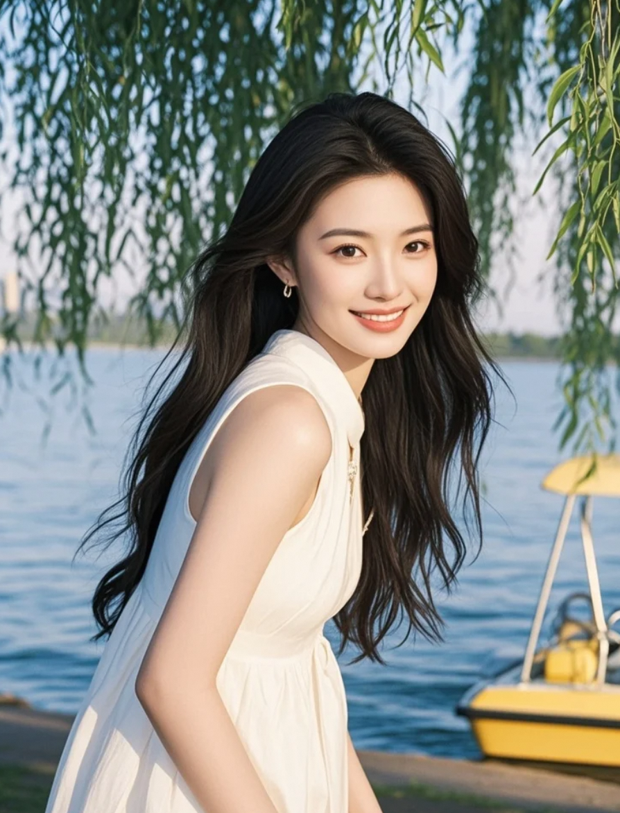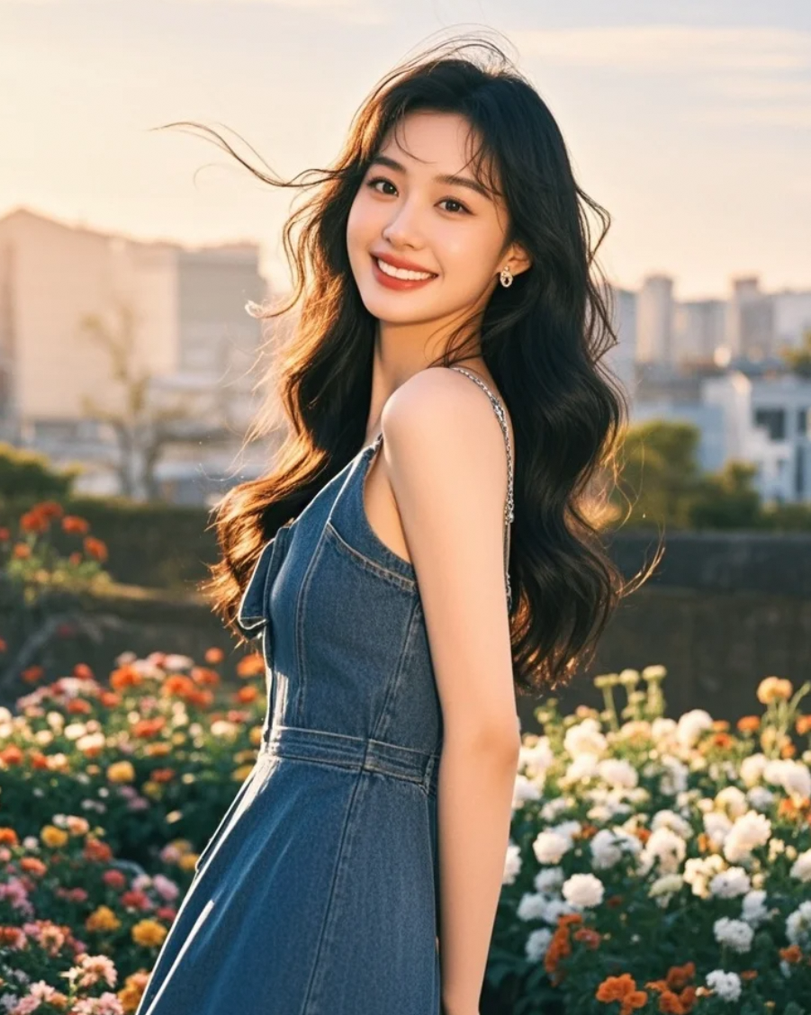 东方女孩的侧影,长发与晚风共舞,优雅成永恒诗篇