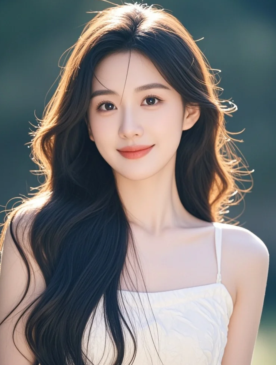 清新脱俗的气质,长发飘逸,笑容是温柔的化身