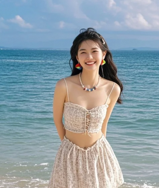 沙滩自拍ing,海风撩发,你猜浪花说了什么悄悄话?
