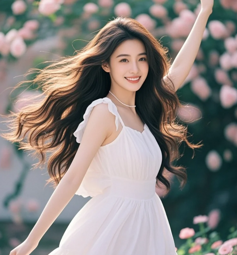 长发如云,笑容如月,她的美带着神秘的东方韵味