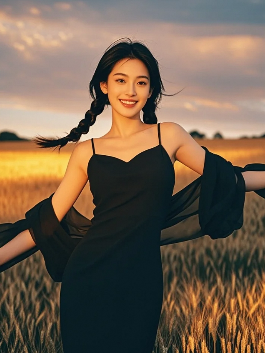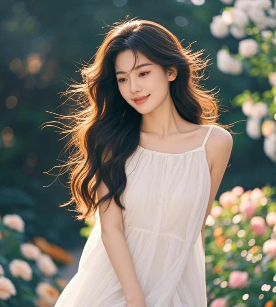 青春洋溢的东方佳人,长发飞扬,笑容明媚如朝阳