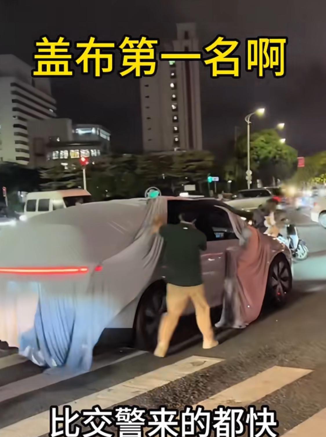 一遇事故先盖遮羞布,这就是所谓的造车新势力? 昨日,福建泉州疑似某想汽车发生交通事故,撞倒一人,看上去也不严重,工作人员确穿着工装当街先盖布。 这种欲盖弥彰的行为真的是在维护品牌正面形象吗? 人人自媒体时代,信息传播速度极快,越是遮盖,越显得车企“心里有鬼”,缺乏承认问题的勇气和透明度,反而会加剧公众的疑虑和不信任感! 以前不见车企动不动就遮布,自从有了所谓造车新势力,也不知道哪家先带的头,如今这种行为反而成为了常态,但更是一种病态!连普通的交通事故也开始遮布,真是让人无语! 比起一块“遮羞布”,消费者更愿意看到的是车企坦诚的态度、过硬的产品质量、负责任的处理方式以及持续改进的安全承诺。毕竟,真正的安全感和信任,不是靠遮掩换来的。