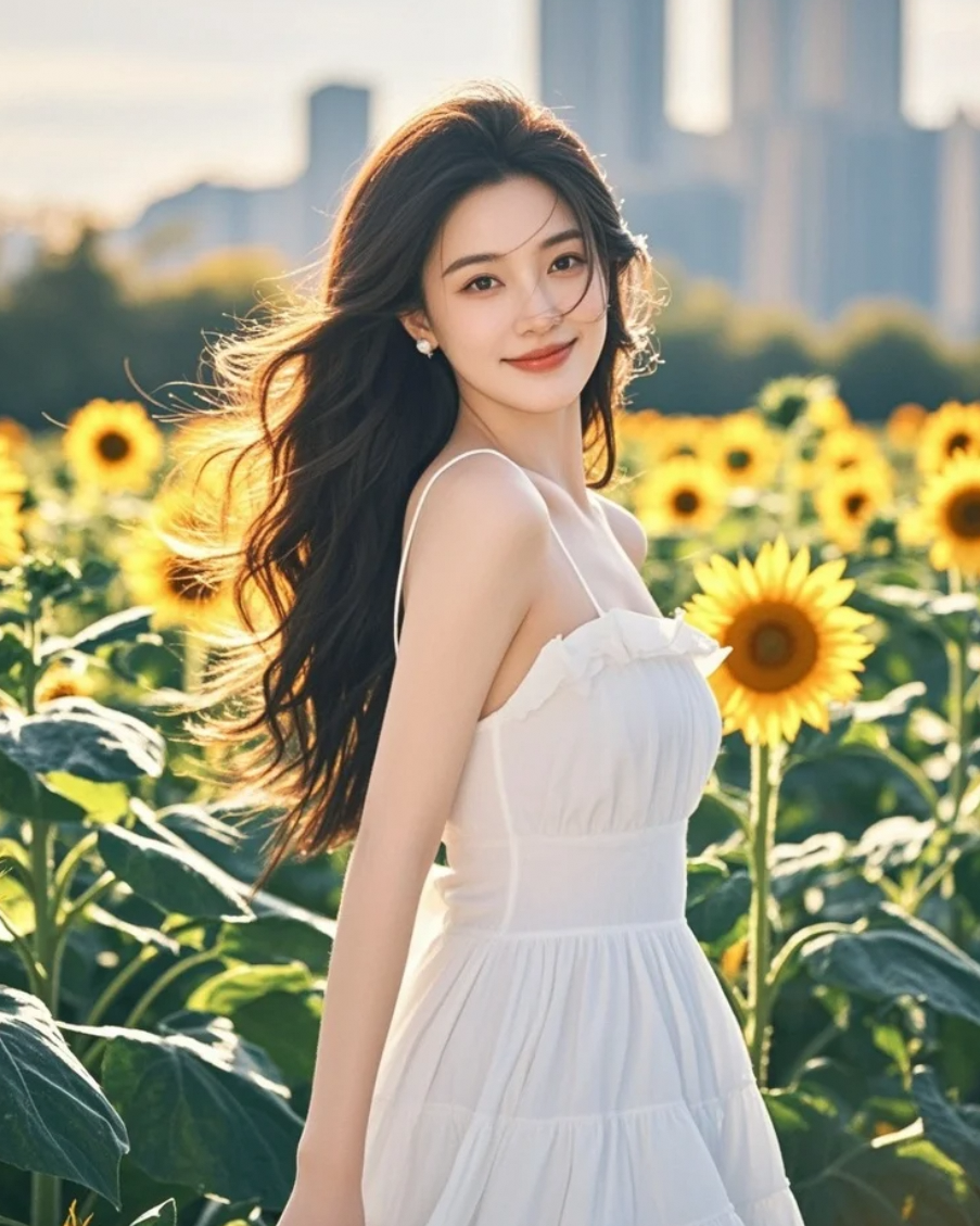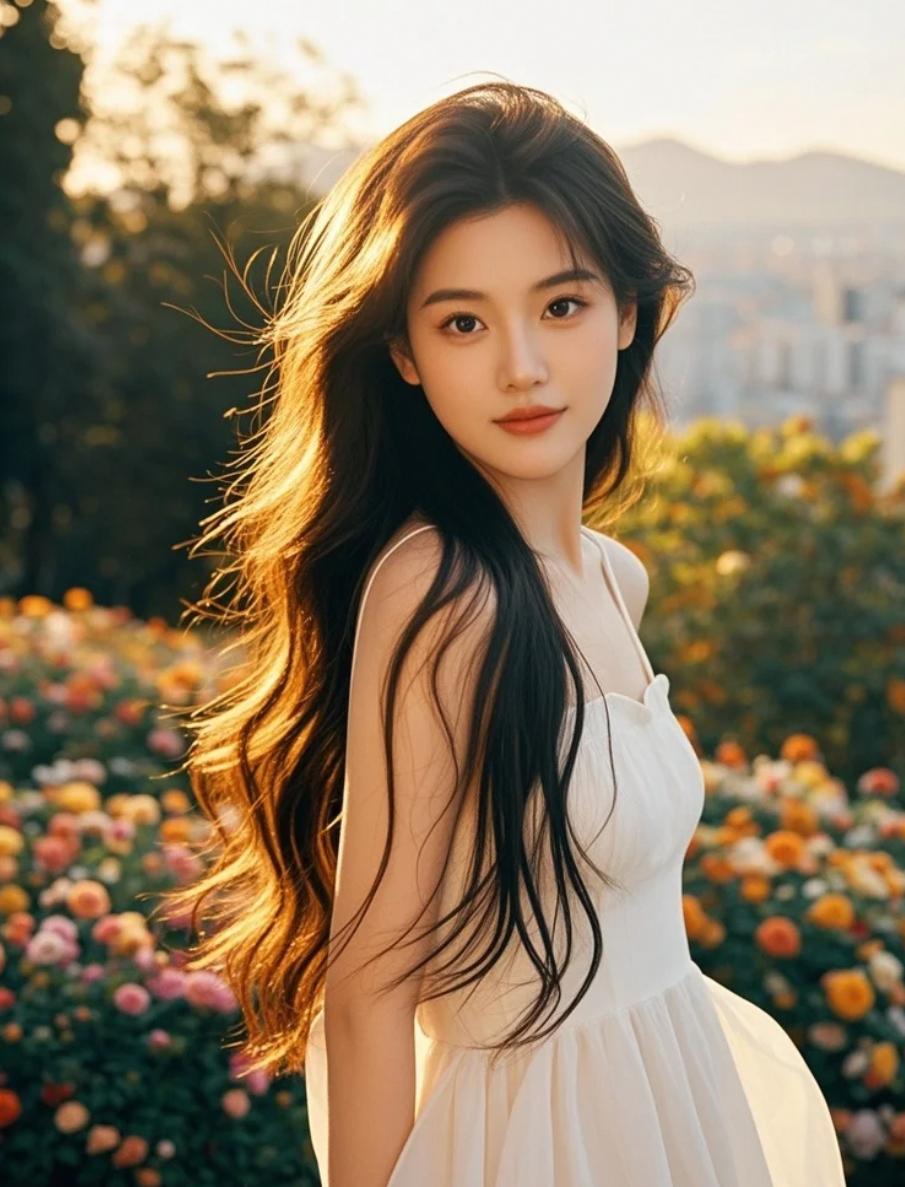 她站在光影里,长发与笑容构成一幅动人的艺术照