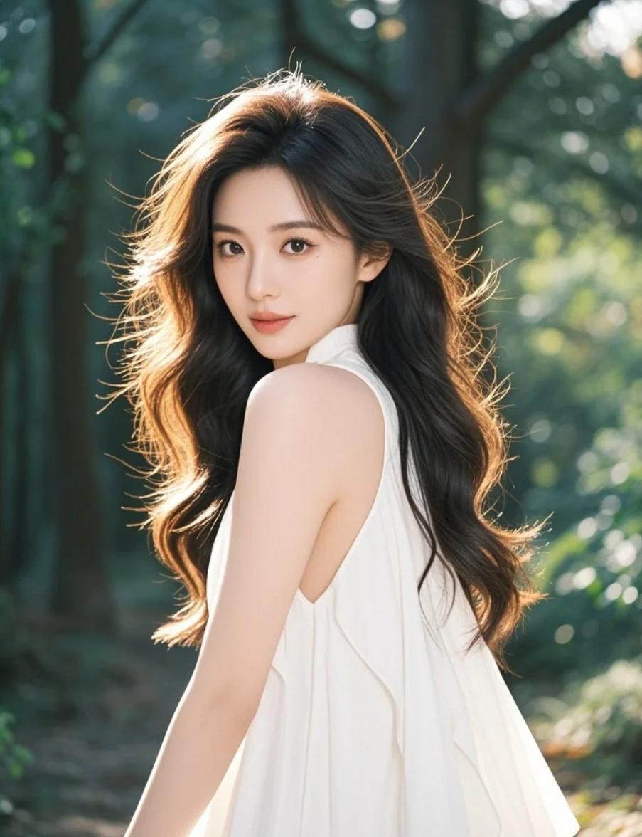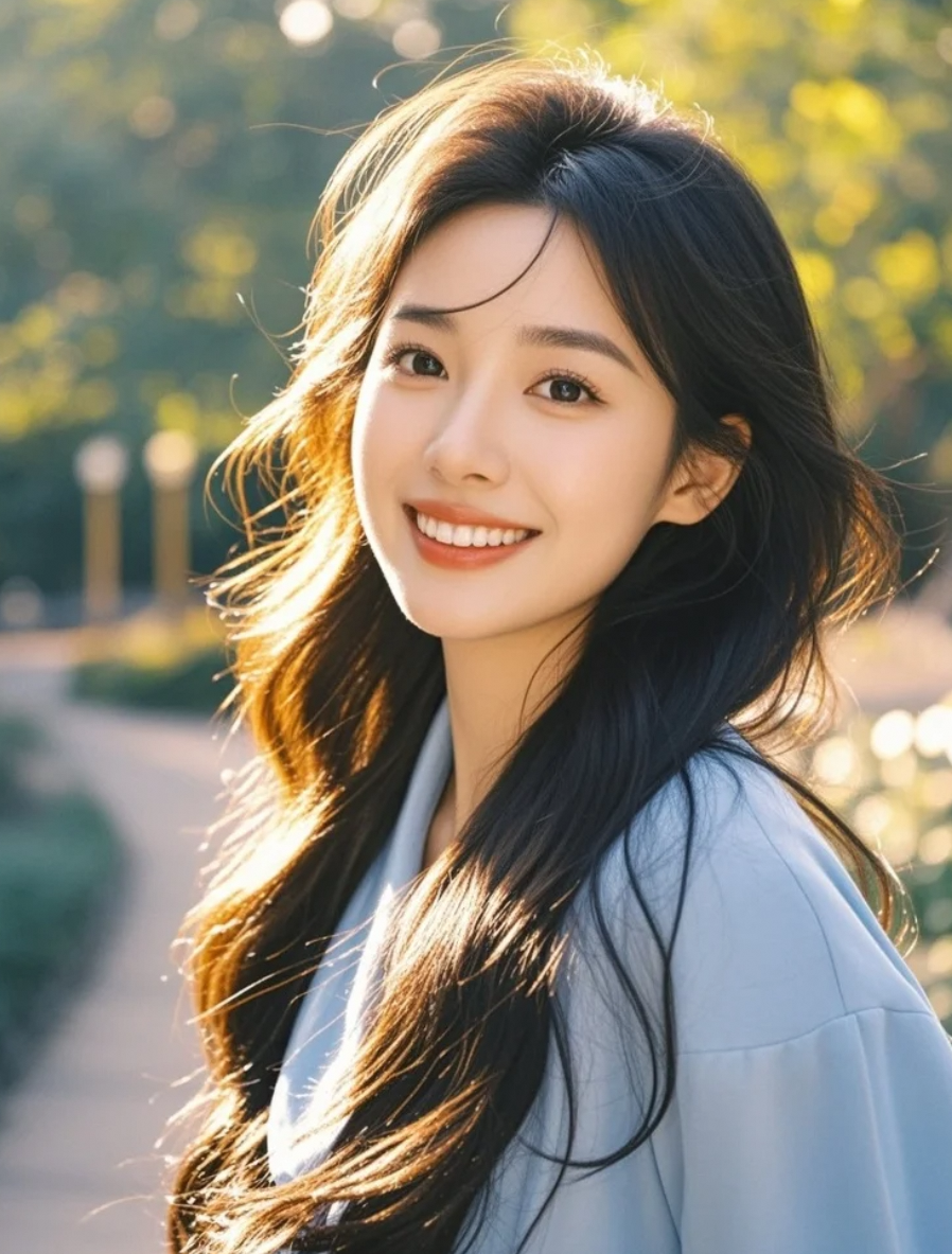 晚风轻送,长发与温柔笑意,诉说着无声的东方情