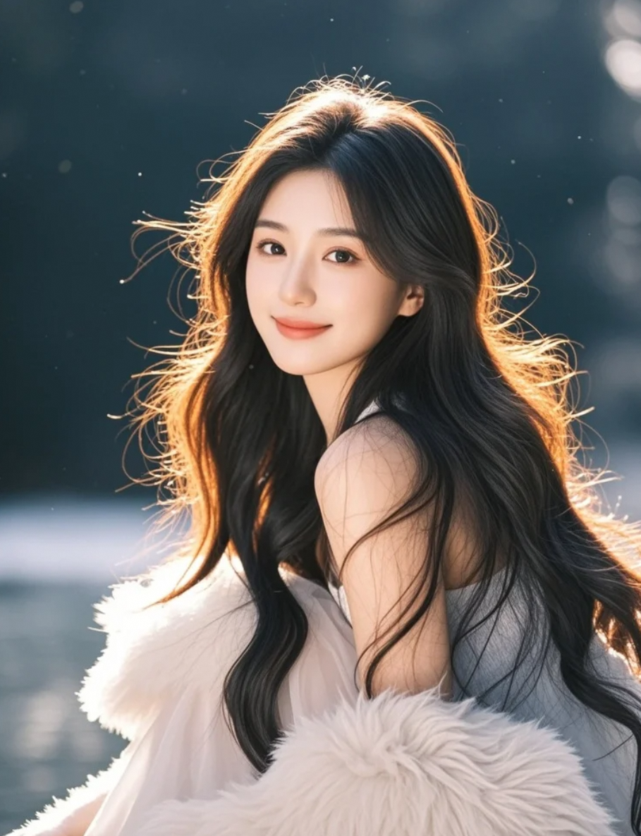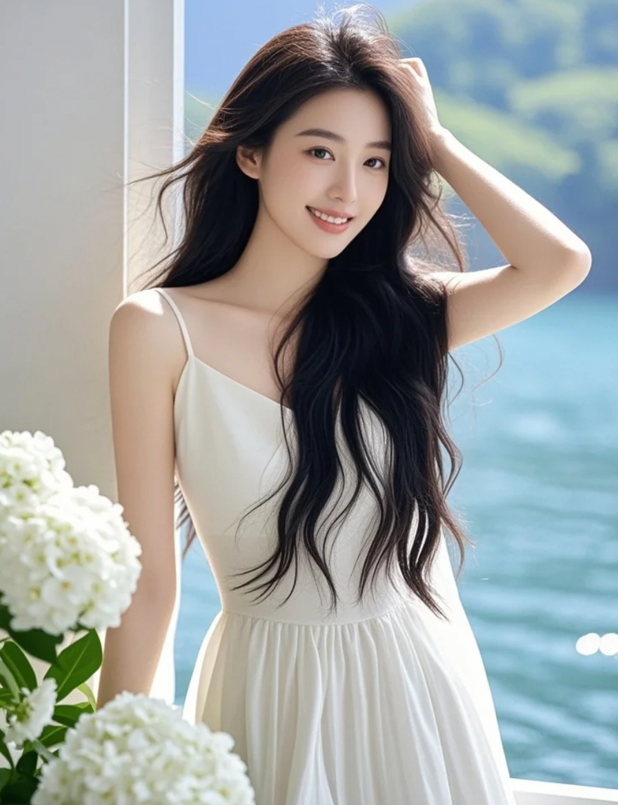 青春洋溢的东方丽人,长发飞扬,笑容灿烂如夏花