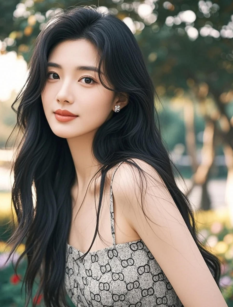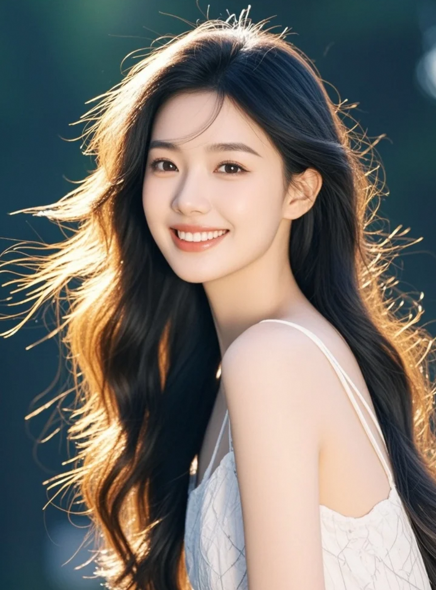 清新脱俗的容颜,长发及腰,笑容如晨露般纯净