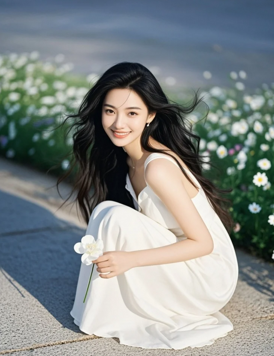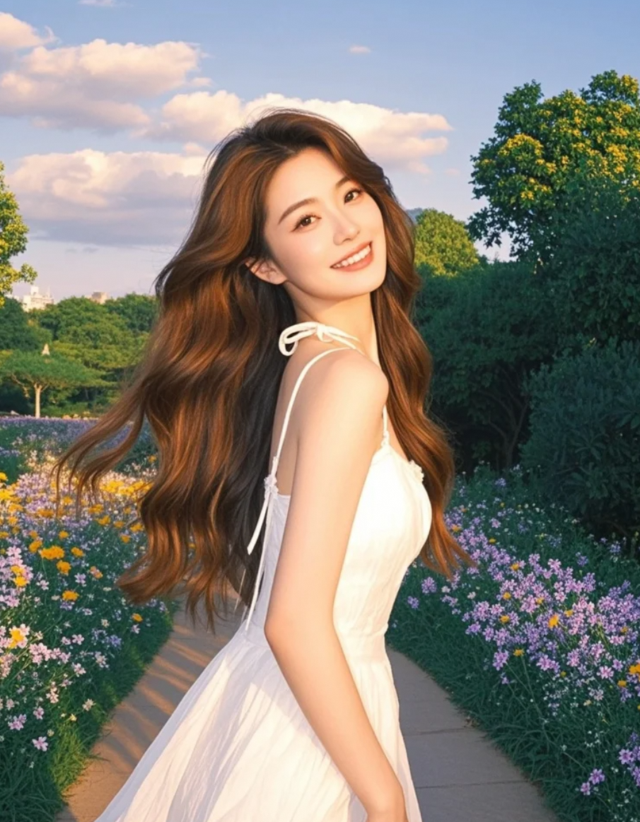 阳光倾泻而下,长发女孩的笑容显得格外明媚温暖