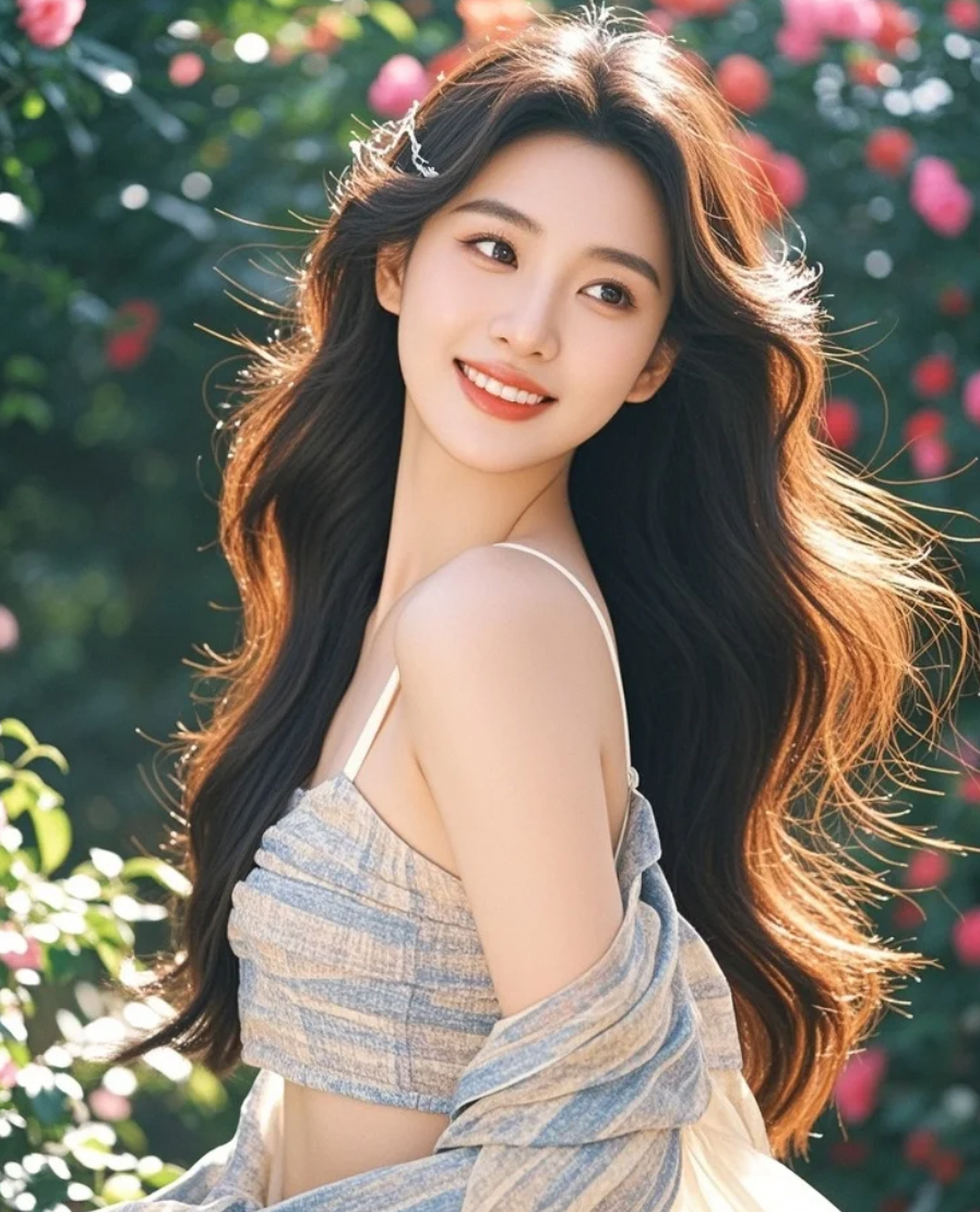 阳光为她的长发镀上金边,笑容是其中最温暖的光