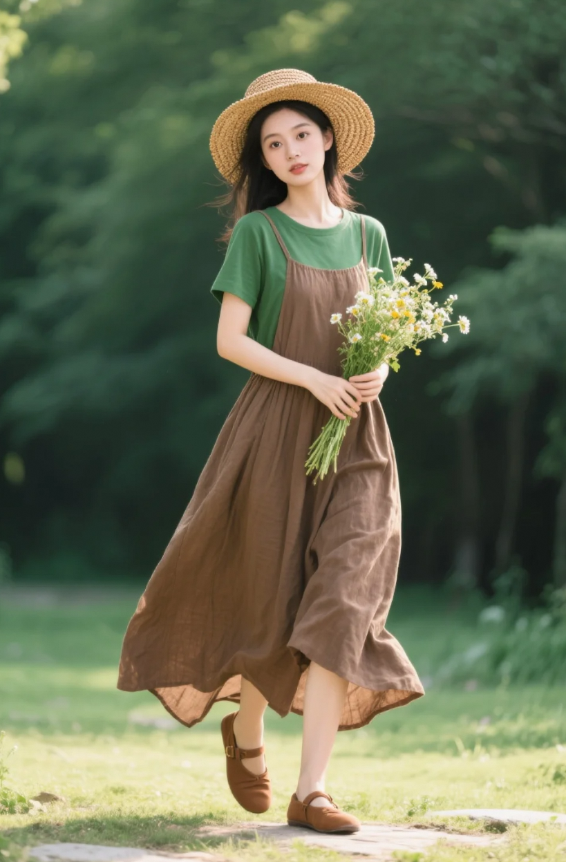 宽松穿搭+草帽+野花,这才是森系写真的正确打开方式