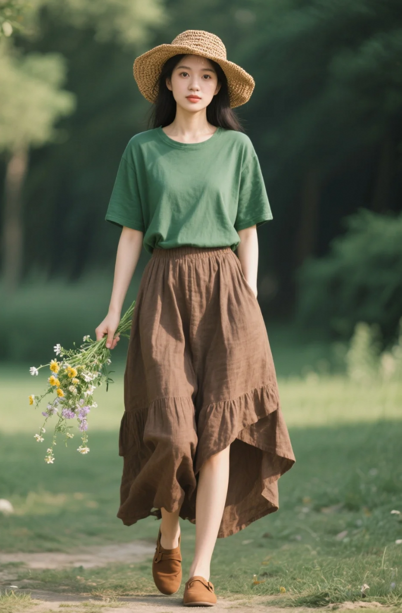 穿越草地的那一刻,她像从油画里走出来的田园少女