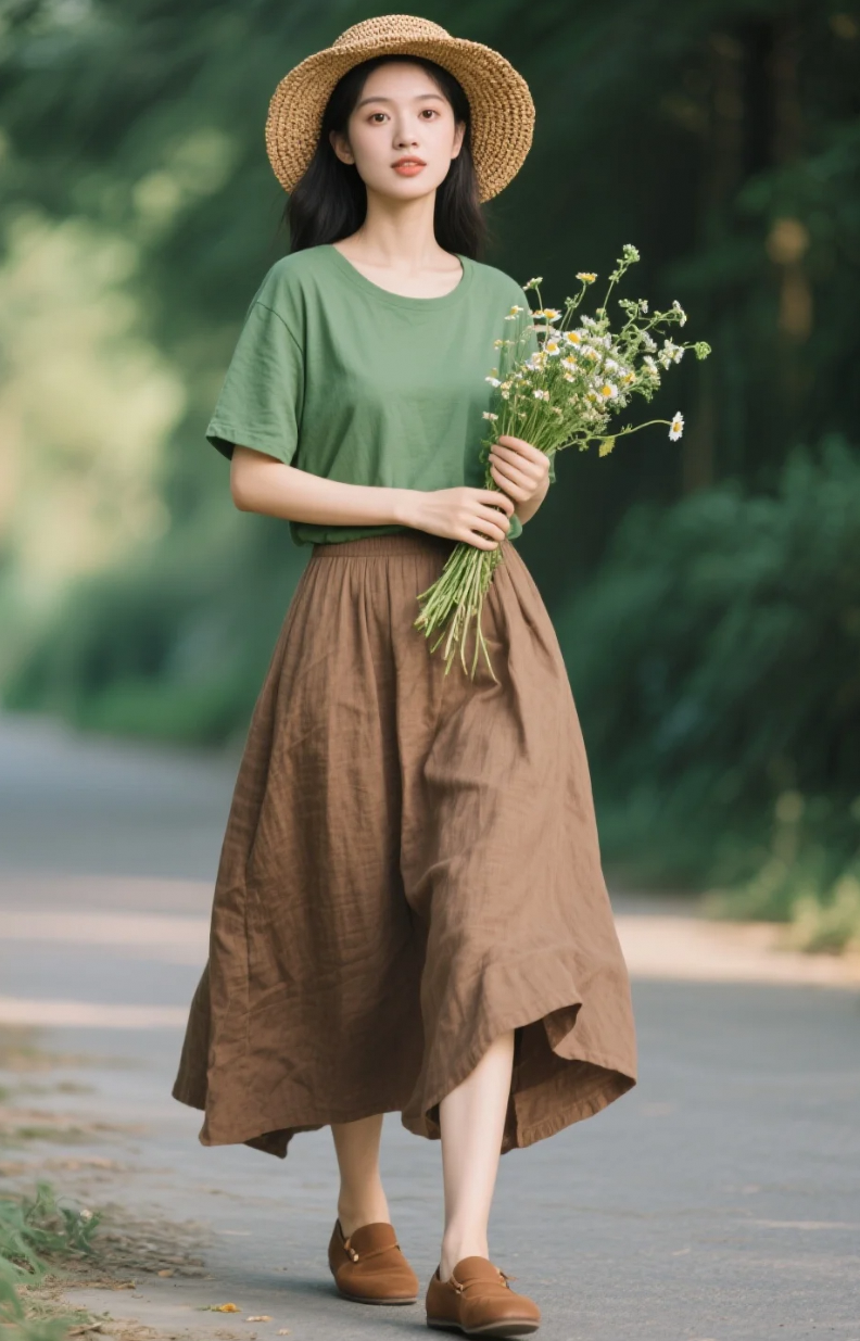 草帽一戴,花束轻握,她把整个夏天走成了诗