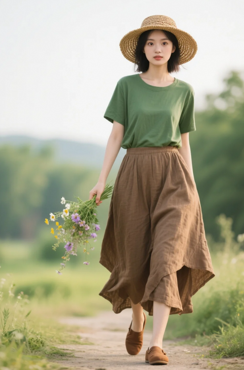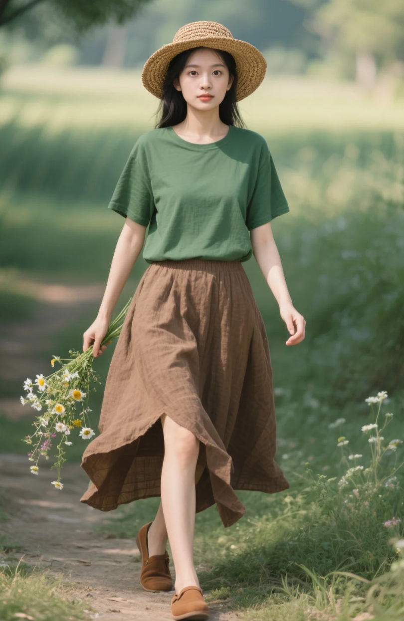 草帽一戴,花束轻握,她把整个夏天走成了诗