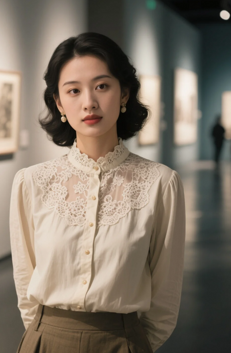 发髻高挽,耳坠轻晃,每一步都带着知性的节奏