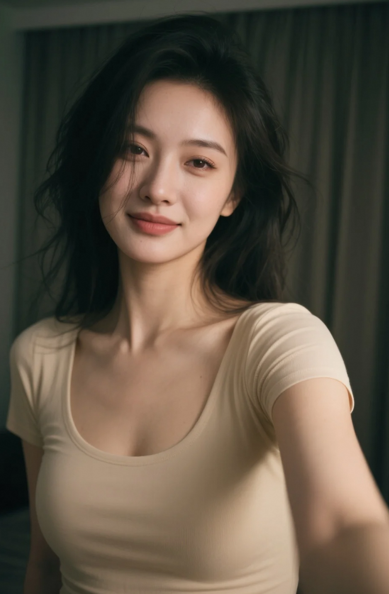 没有浓妆,只有光影和她完美的侧影