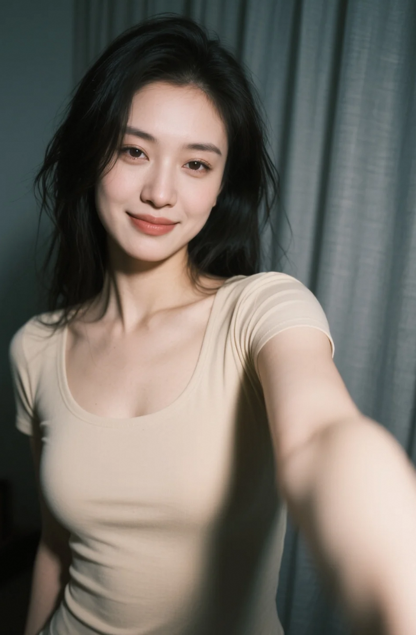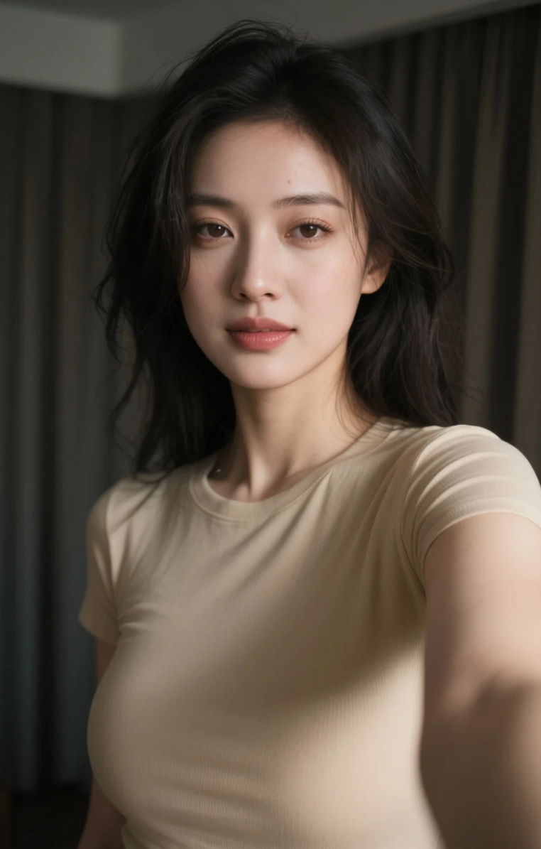 米色贴身,灯光斜照,曲线成了最美的剪影