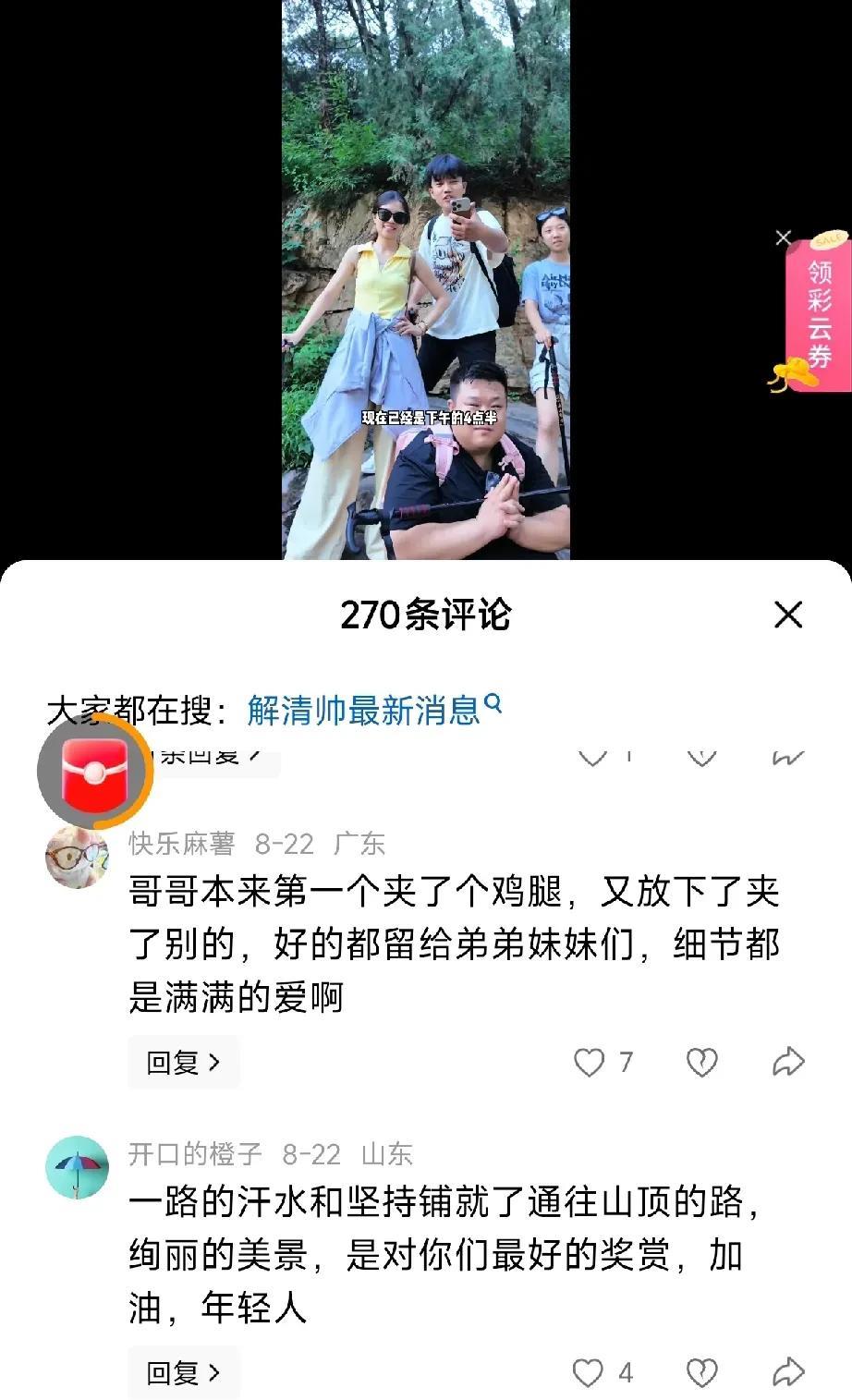 没想到,解清帅这次带着兄弟姐妹去爬泰山,能量满满。 但是,他在发布视频中说的一些话被网友们进行了批评,到底是什么原因呢? 原来他在视频中说,小小泰山让我拿捏,但这句话明显不合适。 泰山可不是一座山那么简单,其中包含的中国传统文化有很多。 而且泰山高大宏伟,很有挑战性,也有很特殊的象征意义。 解清帅如果说想征服泰山的话,这句话比较合适,但之前的话确实有待考量。 难怪评论区的网友给他提出了建议,希望他以后说话注意一些分寸。 本来他最近在网络上就受到一些人的批评和不待见,以后还这样这样的话很危险。希望他好好思考吧。