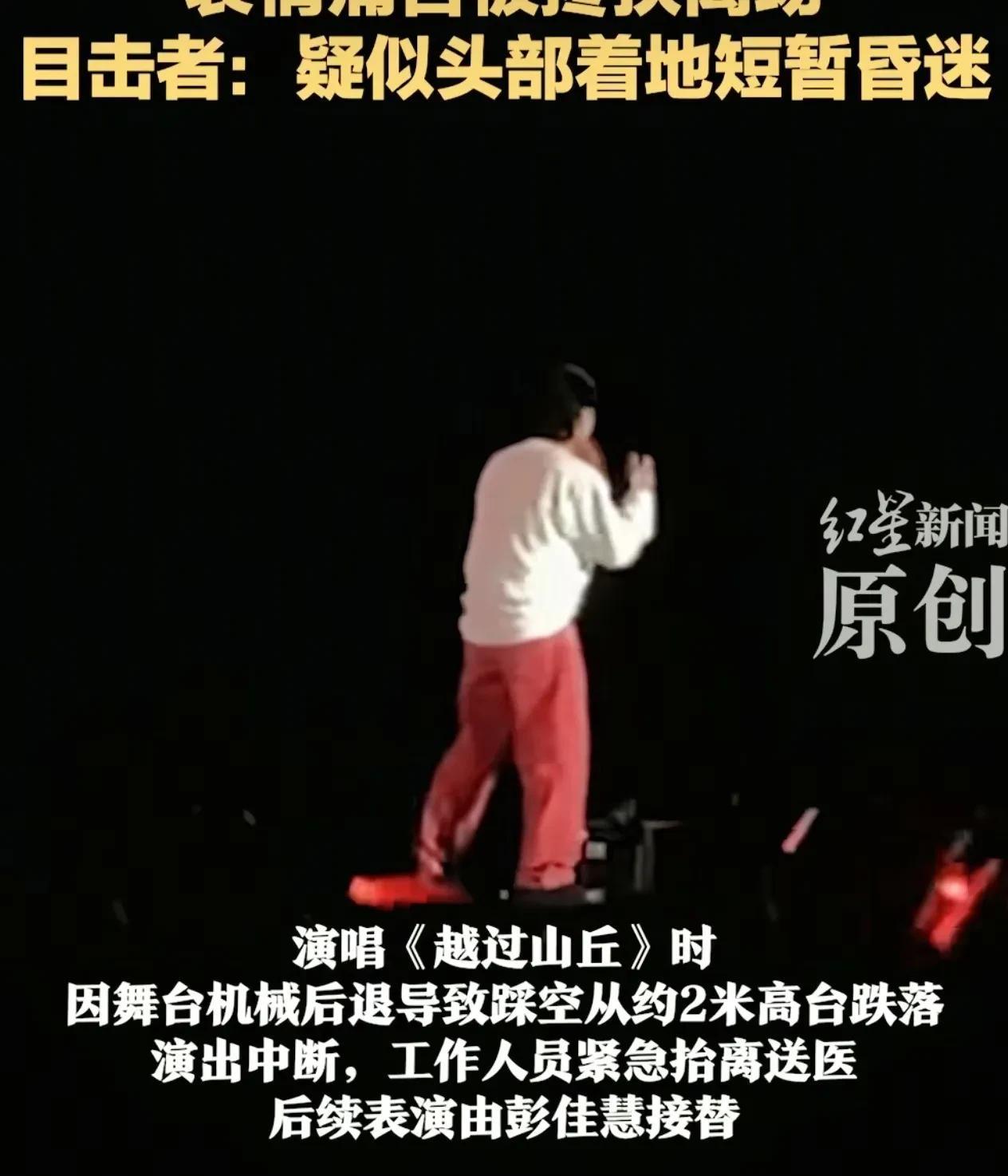 8月23日晚,在西宁“动听音乐超级live演唱会”上,意外突发!杨宗纬在演唱《越过山丘》时,因舞台机械后退,不慎踩空,从约2米高的台上跌落。目击者称,杨宗纬疑似头部着地,还出现了短暂昏迷 。 现场画面中,杨宗纬摔倒后表情痛苦,无法自行站立,工作人员迅速上台将他搀扶离场,演出也被迫中断。随后,他被紧急送往医院检查治疗,后续表演由彭佳慧接替。 目前,杨宗纬的具体伤势尚不明确,希望他能平安无事,早日康复。同时,此次意外也为演出安全敲响警钟,舞台安全措施不容忽视。#明星# #杨宗纬# #娱乐圈# #娱乐圈每日热议#