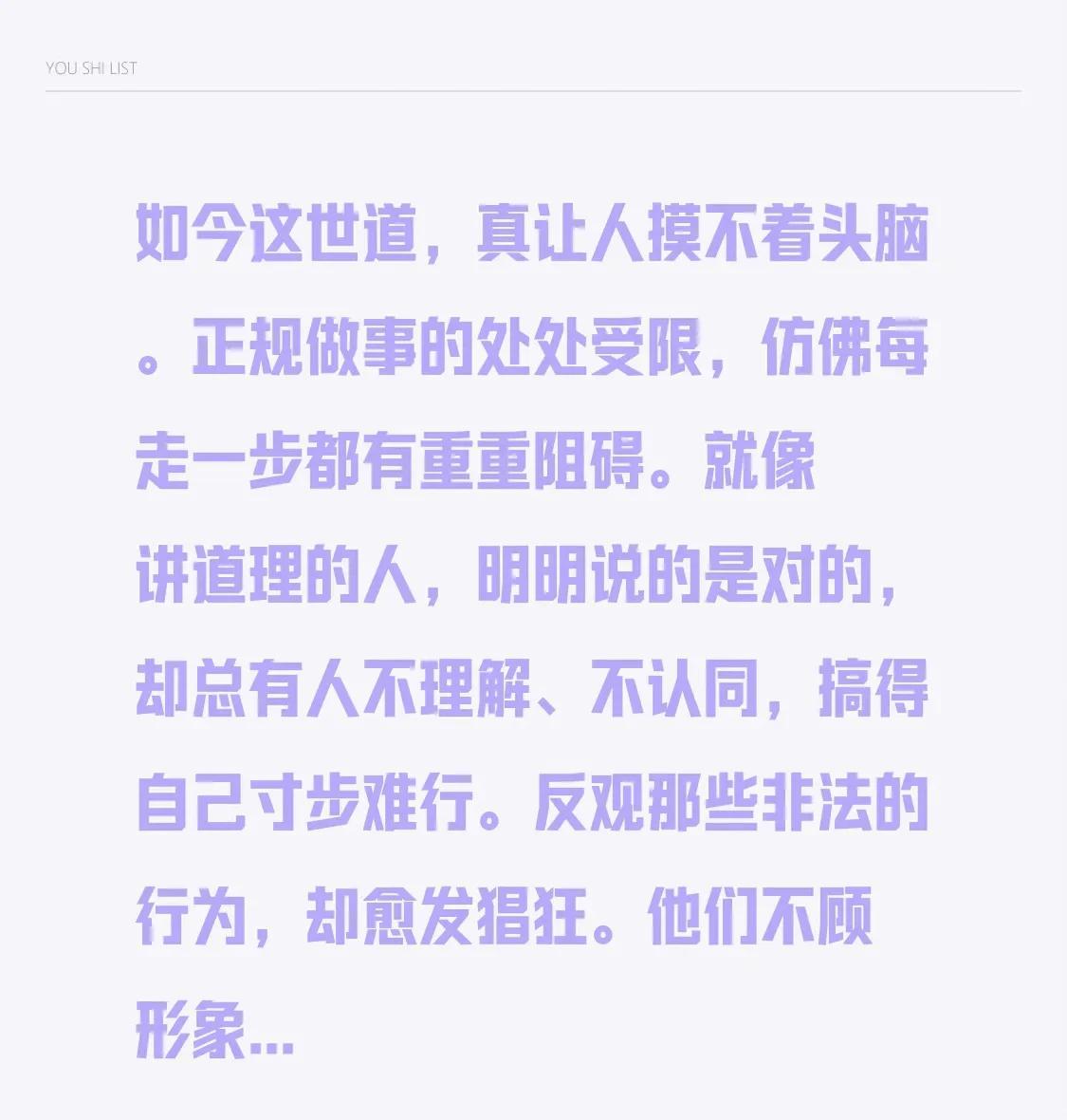 如今这世道,真让人摸不着头脑。正规做事的处处受限,仿佛每走一步都有重重阻碍。就像讲道理的人,明明说的是对的,却总有人不理解、不认同,搞得自己寸步难行。 反观那些非法的行为,却愈发猖狂。他们不顾形象,肆意妄为,好像完全不受约束。真不知道这风气是从什么时候开始变的,希望能早日扭转,让正规的路好走些,让非法的行为得到应有的制裁。