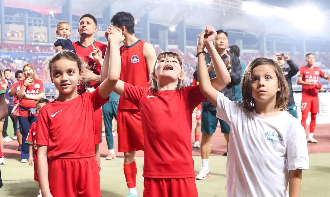 大胜大连英博后,航海体育场成为了欢乐的海洋。门将王国明举着旗帜和主场球迷互动。河南队的几位外援也把自己的家人带过来了,他们越来越有归属感了。 在主教练拉莫斯的执教下,河南队已经进入了良性轨道。相信接下来,球队还会给球迷们带来更多的惊喜。