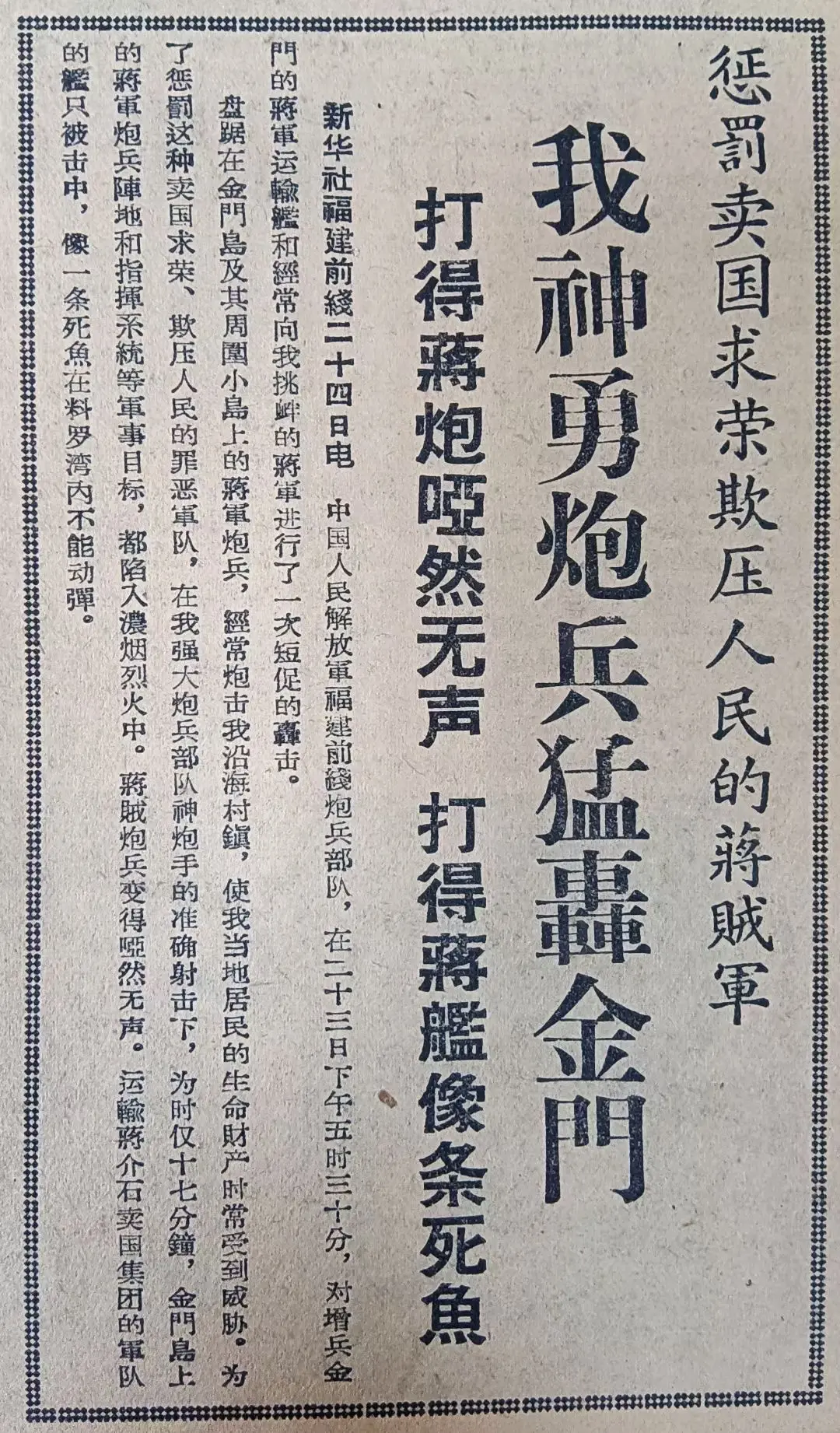 老报上的今天---六十七年前的1958年8月25日《北京日报》头版报道:我神勇炮兵猛轰金门。打得蒋炮哑然无声,打得蒋舰像条死鱼。