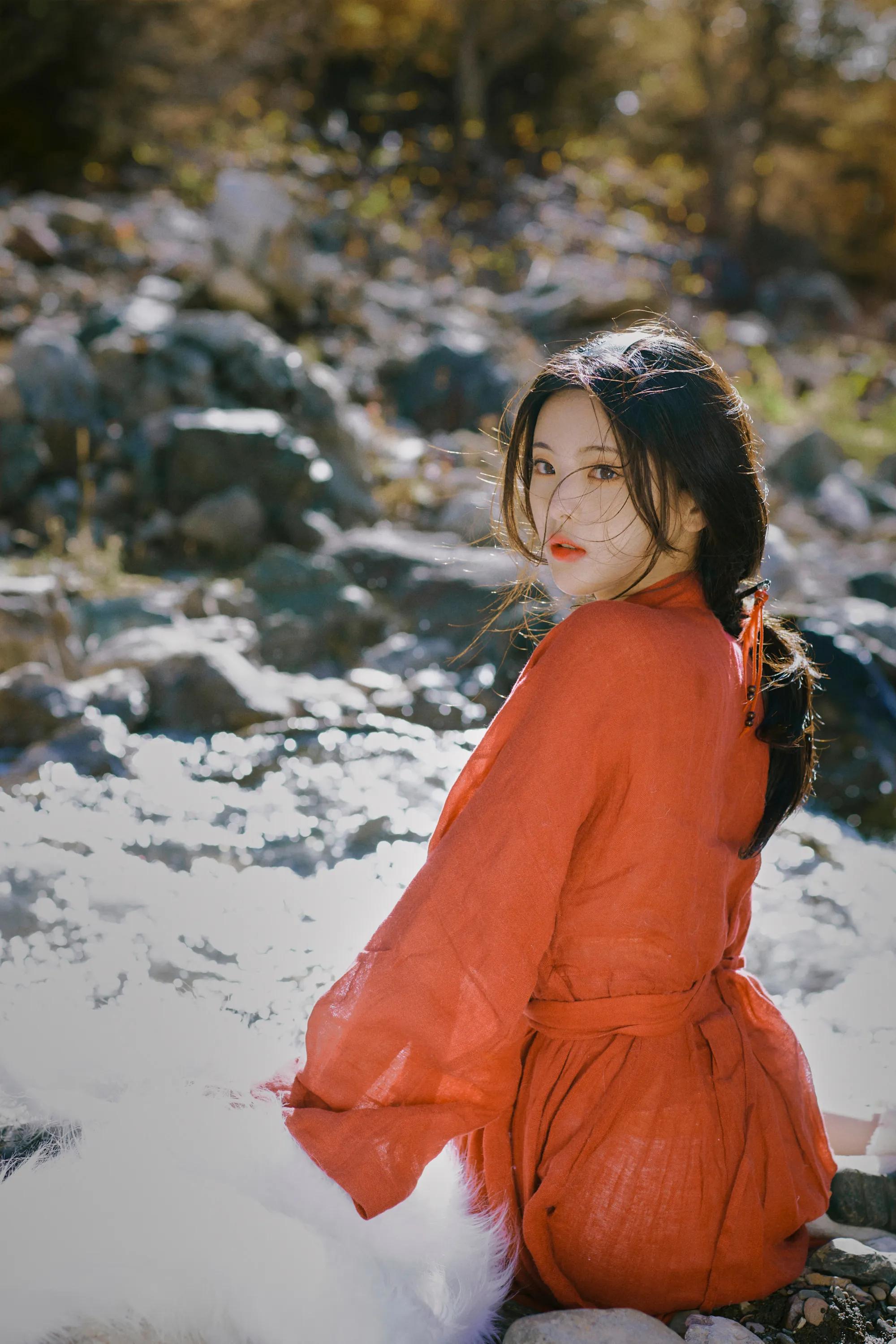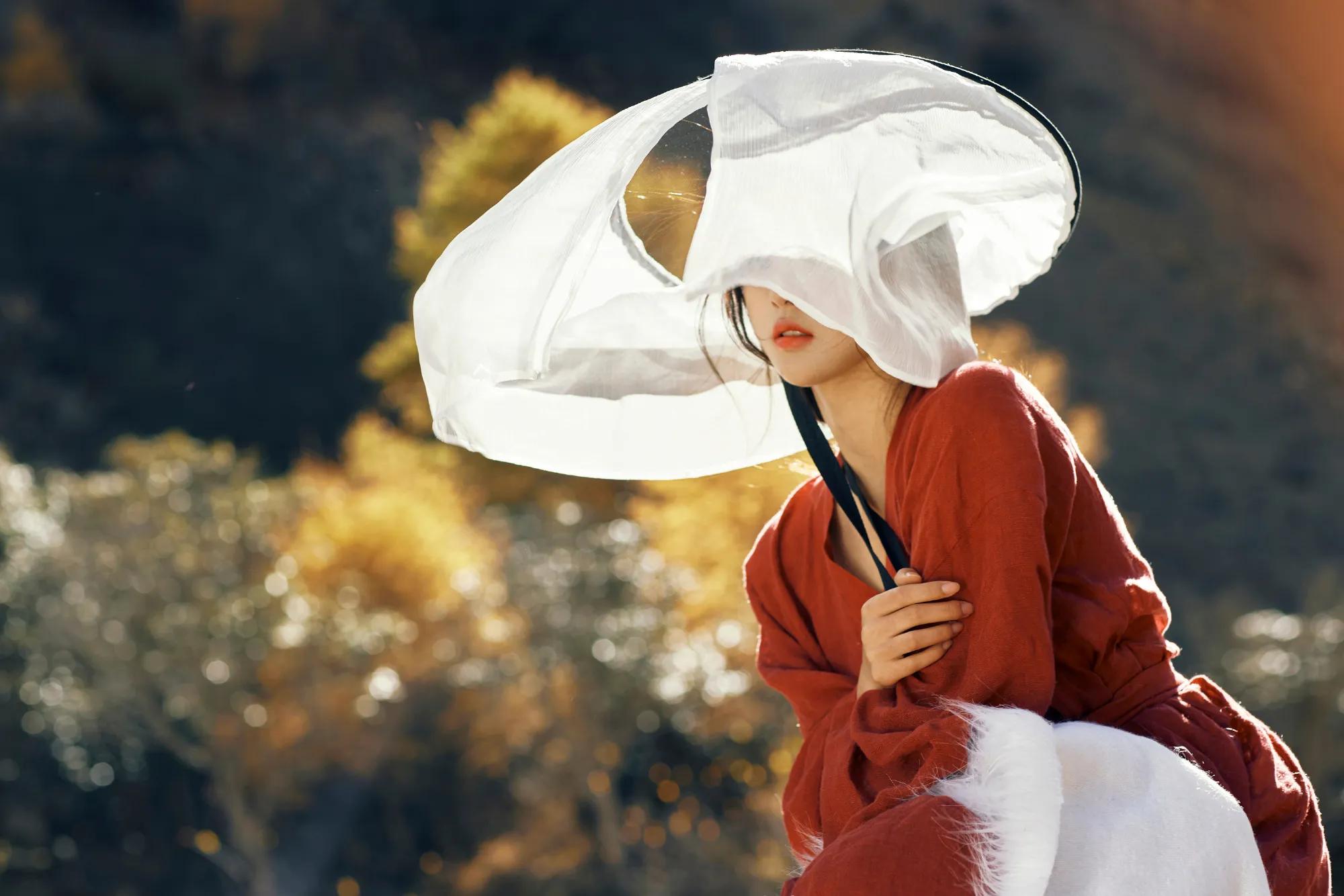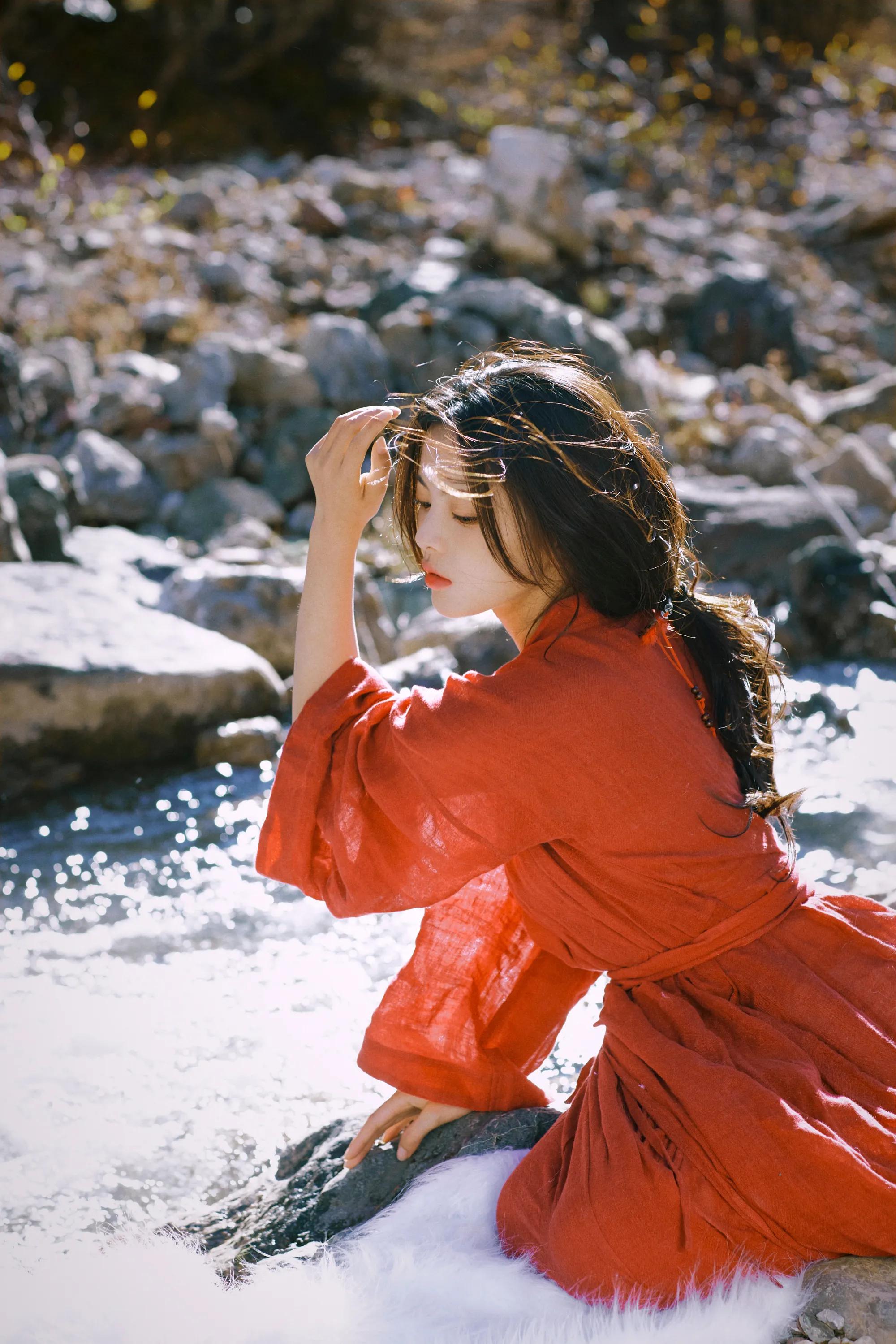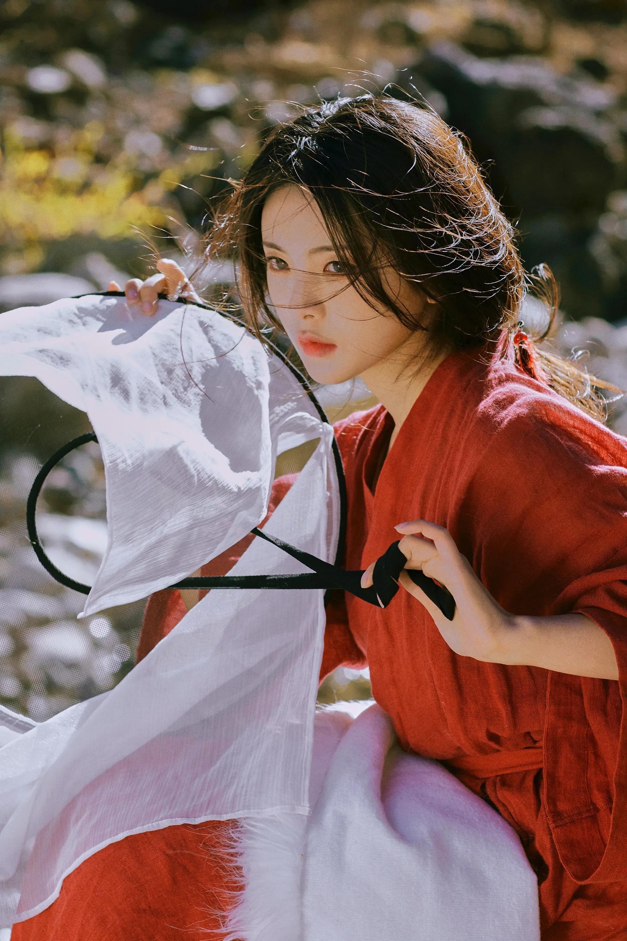 杨超越古风红衣侠女写真:惊鸿一瞥美少女