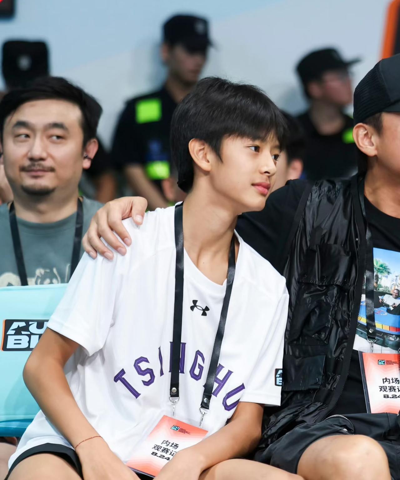 邓超父子跟姚明一起看比赛 14岁的等等越来越帅气,小伙子长得好周正,跟妈妈孙俪如
