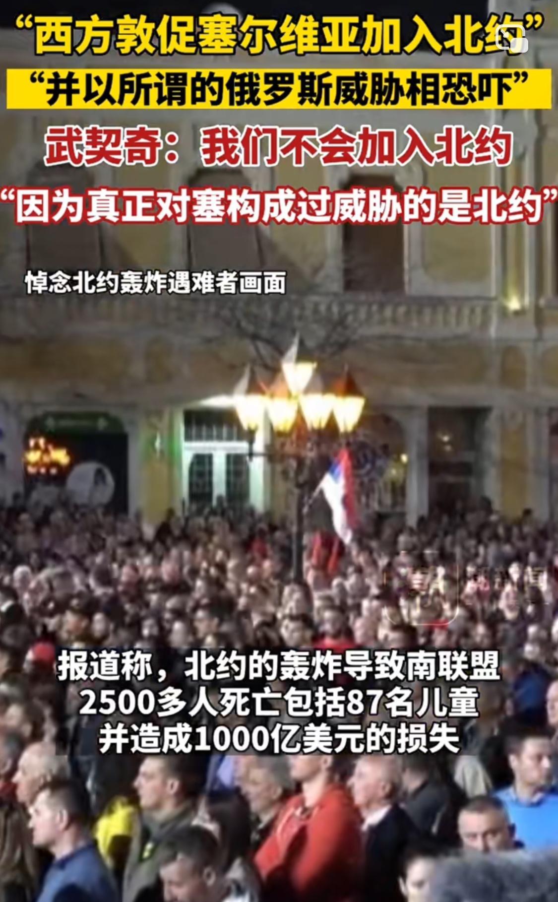 西方正加速拉拢塞尔维亚加入北约! 据俄罗斯驻塞尔维亚大使哈尔琴科24日透露,近日,西方正下大力气加速推动塞尔维亚加入北约,部分原因是逃脱1999年的轰炸责任!对于这个消息,其实不算新鲜,毕竟这几年北约拉拢塞尔维亚的动作一直都没停过。 对于北约来说,邀塞尔维亚入北约好处太多,掩盖罪行、逃脱责任反而是不那么重要的原因,削弱中俄在巴尔干地区的影响力、为科索沃独立扫清障碍和巩固东翼才是那更为重要的原因! 武契奇领导的塞尔维亚政府曾多次明确拒绝加入北约。一是被炸历史不能忘也不敢忘,二是目前与中俄经济深度绑定,三是尽管遭受“颜色革命”、经济和科索沃问题施压,但武契奇政权相对稳定。 目前来看,西方的软硬兼施大法,对武契奇政府效果有限!