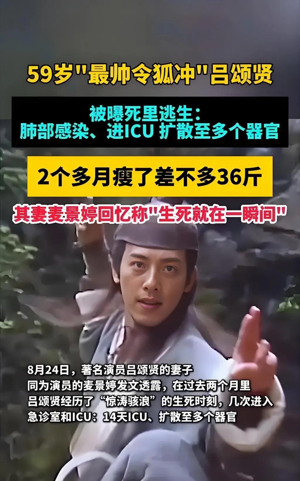 2025年8月,59岁香港演员吕颂贤因肺部罕见细菌感染,多次辗转急诊室与ICU,